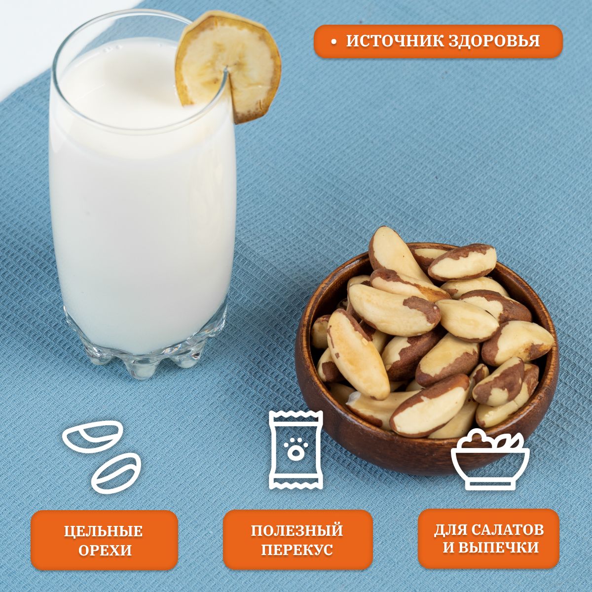 Описание: Бразильский орех является очень питательным орехом, он способствует снижению уровня холестерина и нормализации сахара в крови, помогает переживать стрессы. Бразильский орех характеризуется высоким содержанием минеральных веществ, таких как калий, фосфор, железо, магний, цинк, медь. Богат витаминами А, Е и В. Кроме того, входящие в его состав антиоксиданты (вместе с витамином Е) способствуют продлению жизни и сохранения красоты. Одним из полезных и одновременно редких микроэлементов этого ореха является селен. Одни орешек в день обеспечит суточную норму селена.