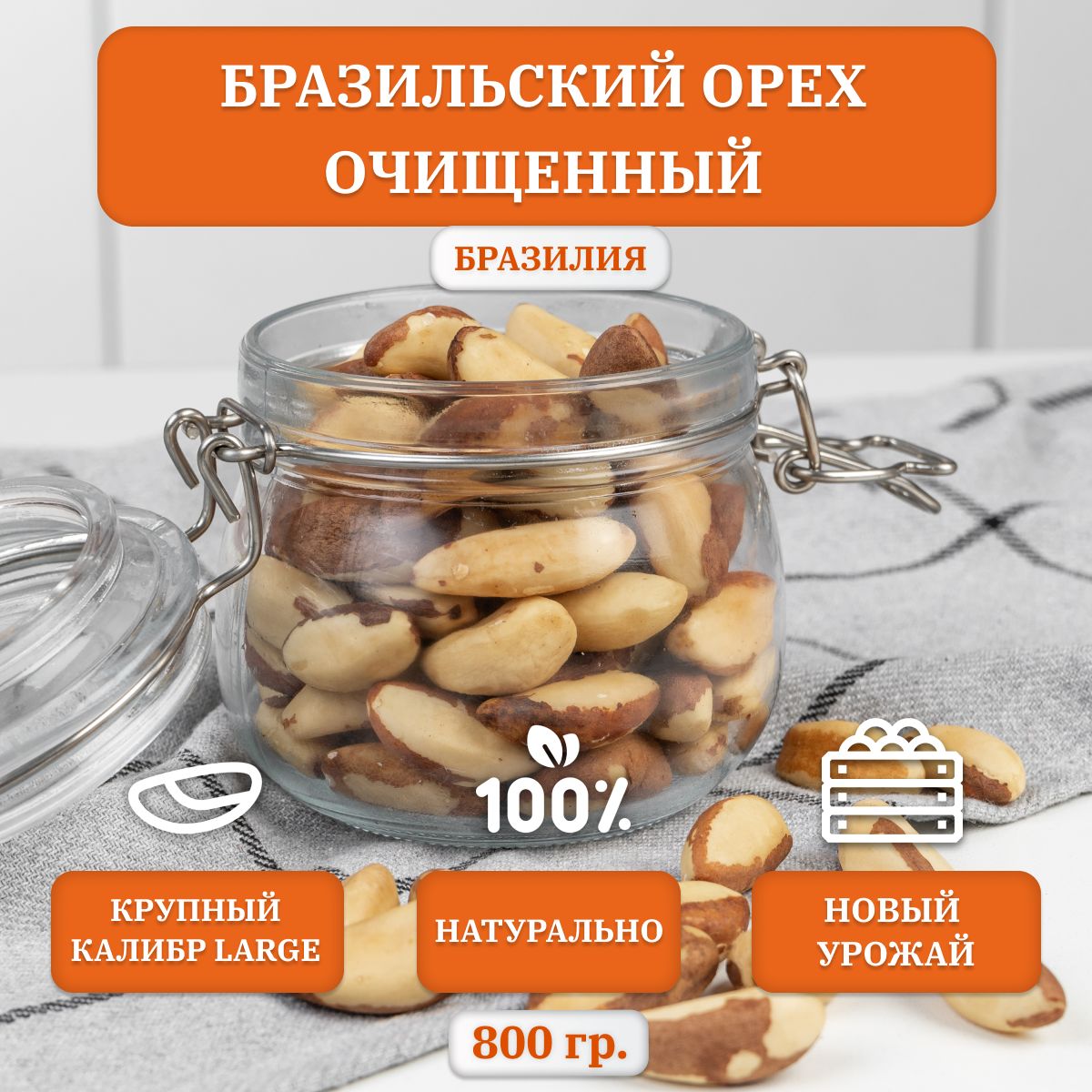 Бразильский орех жареный, крупный калибр LARGE, 800 гр.
