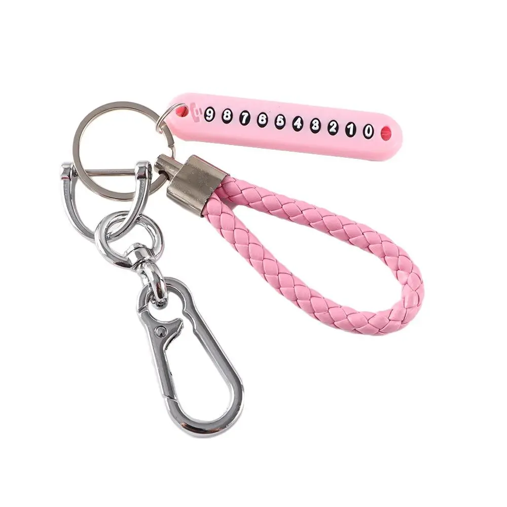 Брелок с кожаным покрытием для автомобиля, подвеска для ключей с табличкой с номером телефона, с защитой от потери