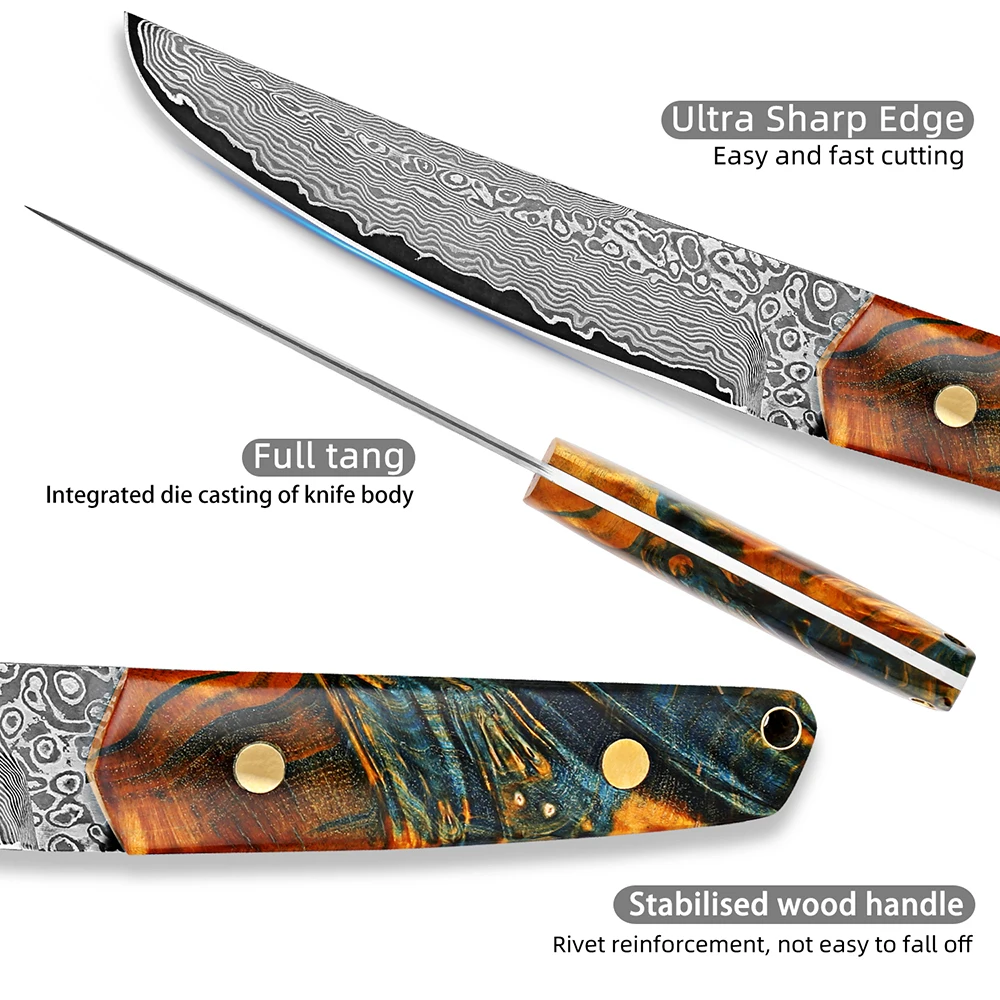 Кухонный универсальный нож из дамасской стали 5 дюймов Full Tang Blade Супер острый японский нож VG10 Эргономичная стабилизированная деревянная ручка