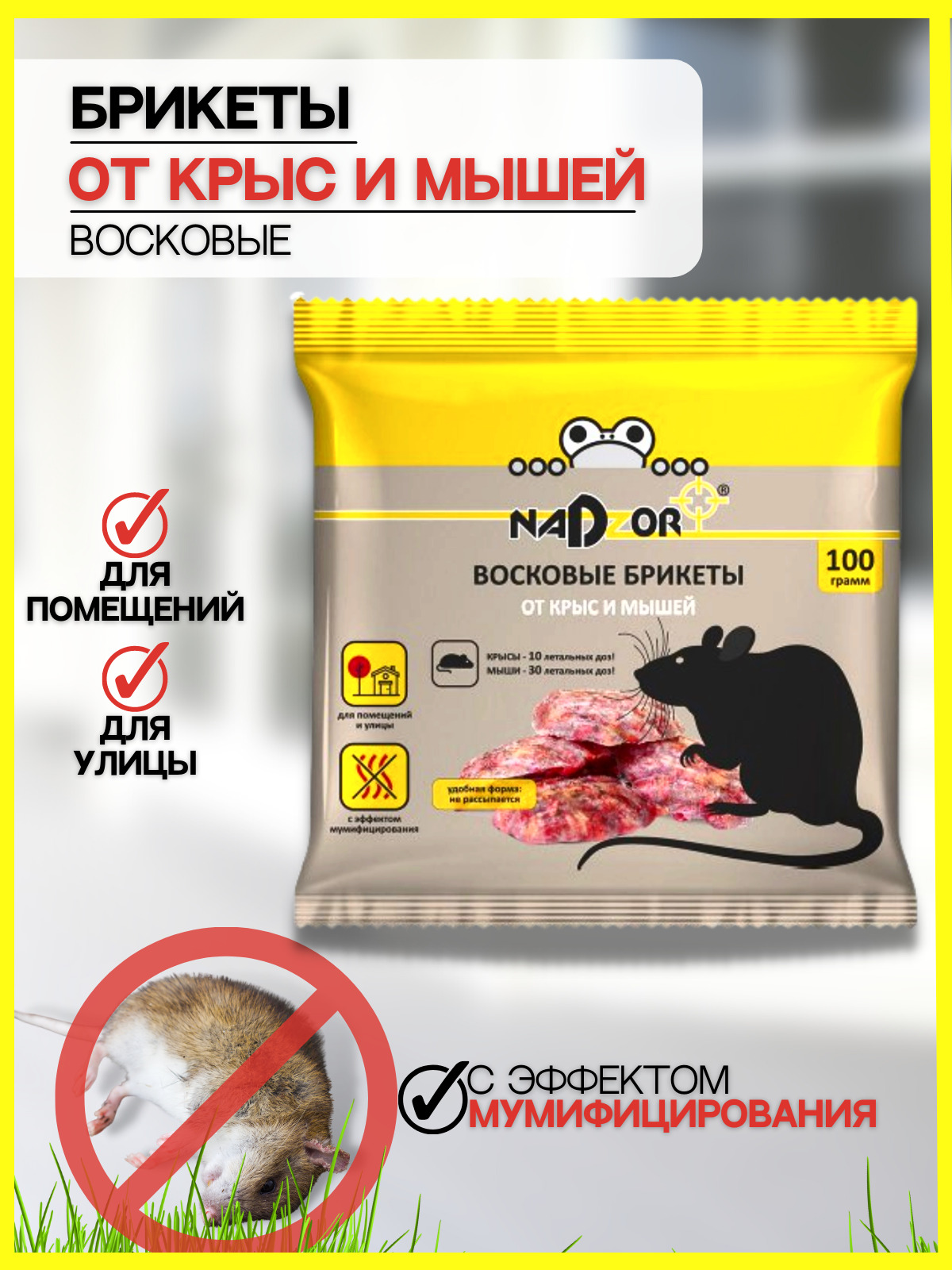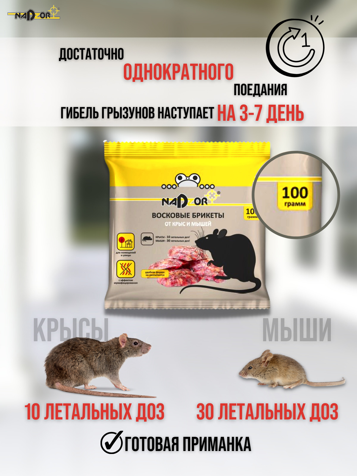 • Универсальная ГОТОВАЯ приманка отрава от уничтожения крыс и мышей NADZOR.