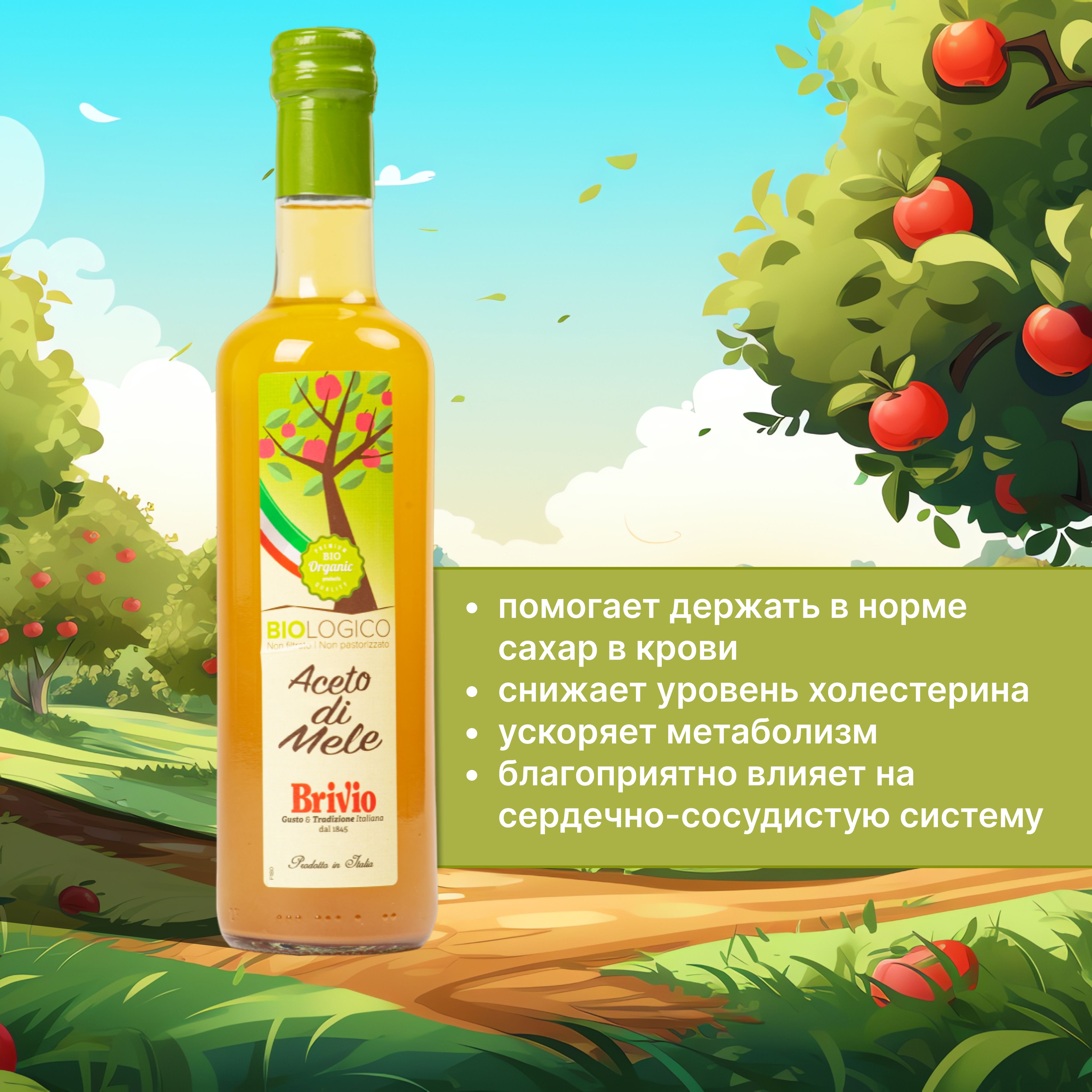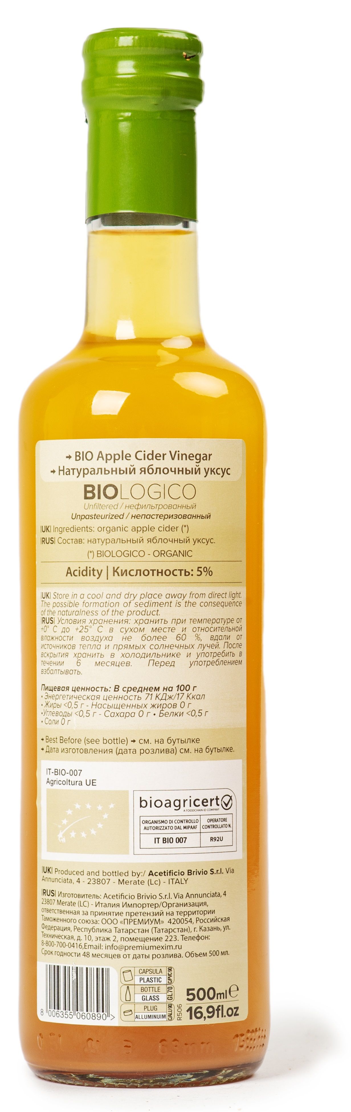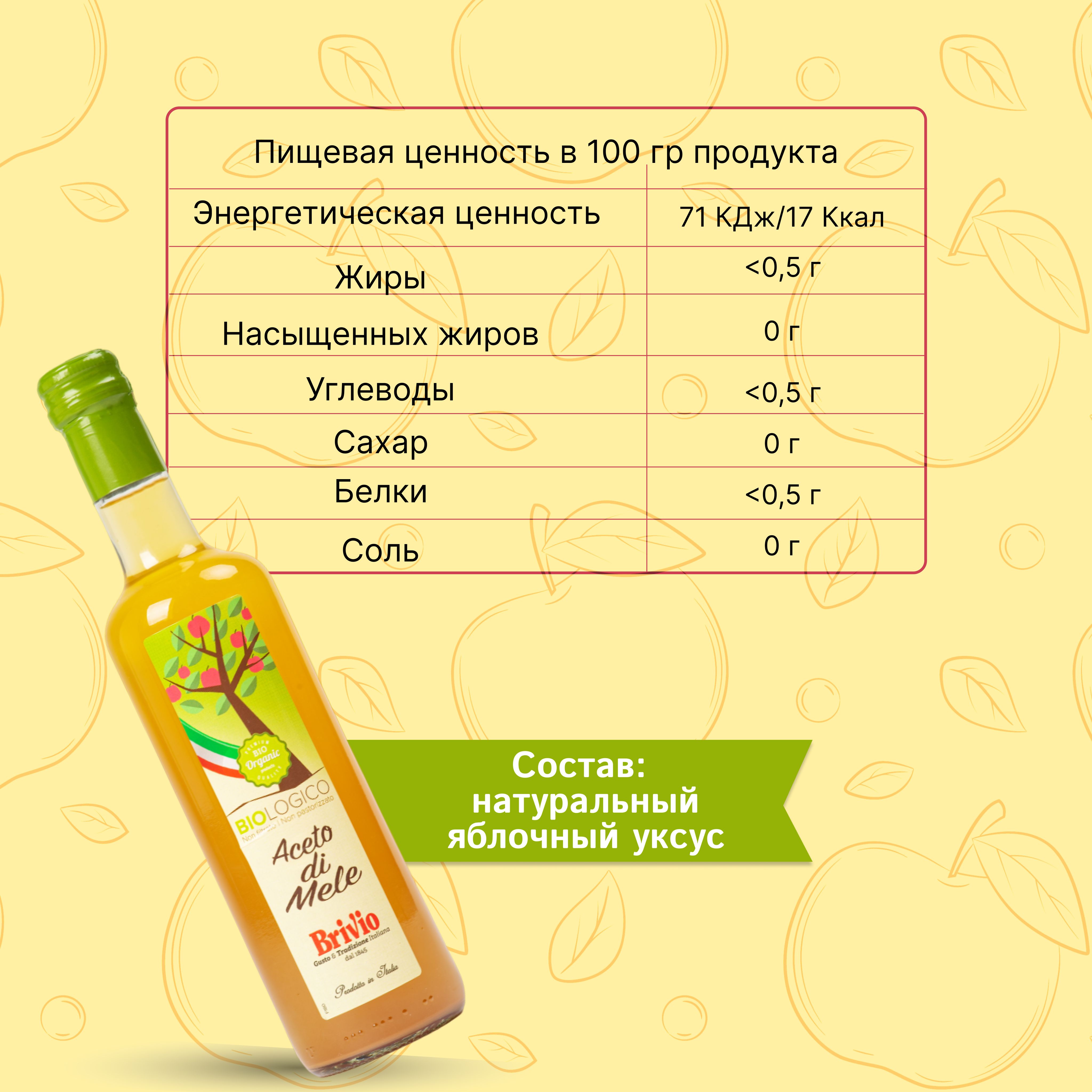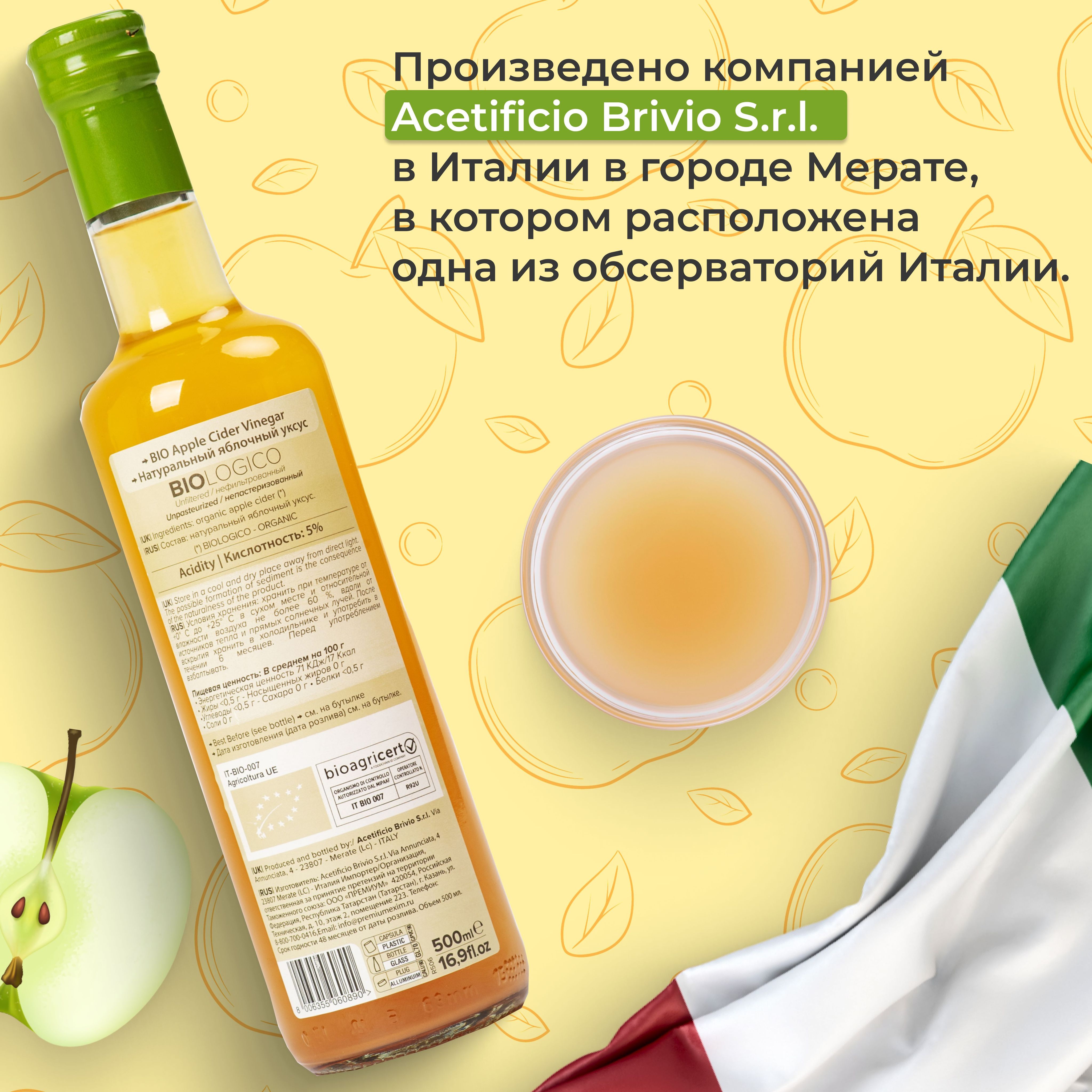 Brivio Натуральный яблочный уксус 500 мл. Нефильтрованный