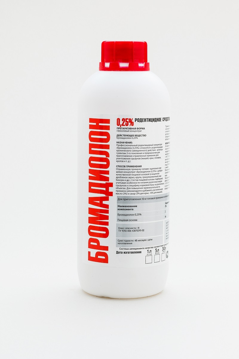 Бромадиолон 1л - используют для уничтожения крыс и мышей путём приготовления пищевых приманок.