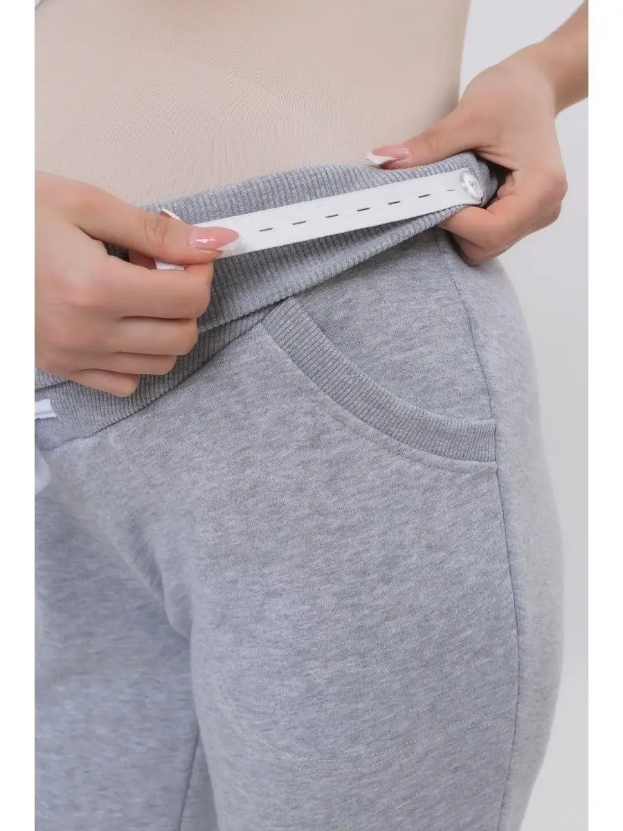 Описание: Спортивные брюки для беременных из трехниточного футера (пенье). Высокий эластичный бандаж мягко и деликатно поддерживает растущий животик. Объем регулируется шнурками в поясе и перфорированной резинкой, перестегивающейся на пуговицу, что позволяет носить брюки от начала до конца беременности и после родов. Длина регулируется подворотом брючины и подходит на любой рост. Невероятно комфортная модель для прогулок, занятий спортом и просто на каждый день.
