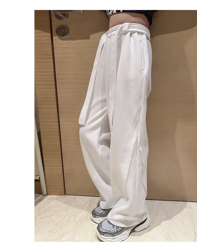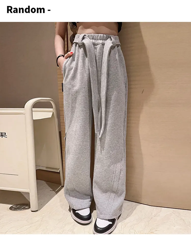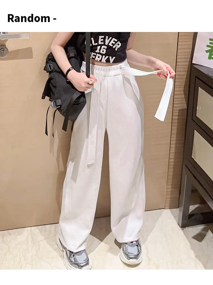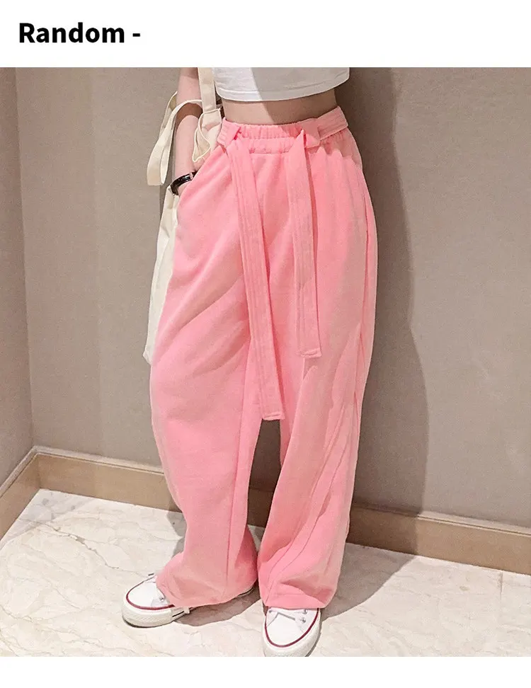 Широкие штаны для девочек-подростков весенне-осенние спортивные повседневные штаны для детей, Модные свободные детские штаны с поясом для детей 10, 12, 13, 14 лет