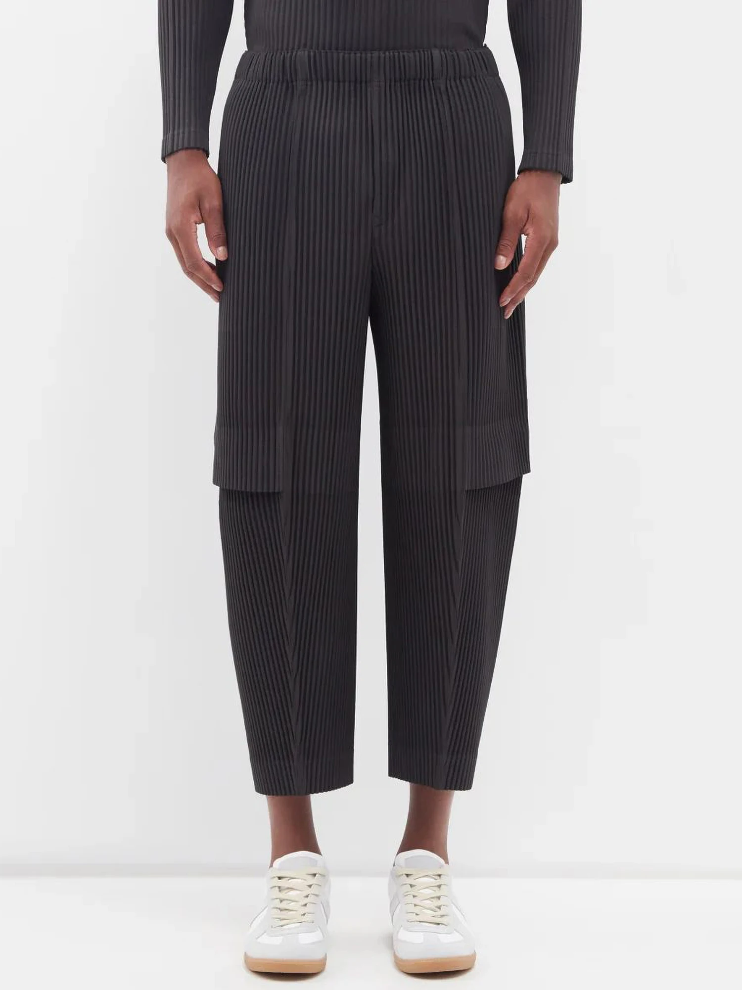 Брюки-карго Miyake мужские Плиссированные, черные штаны до щиколотки с завышенной талией