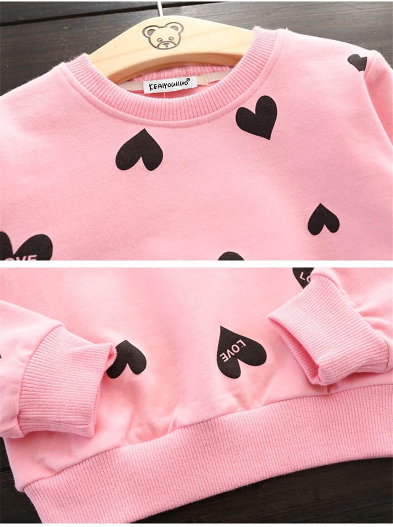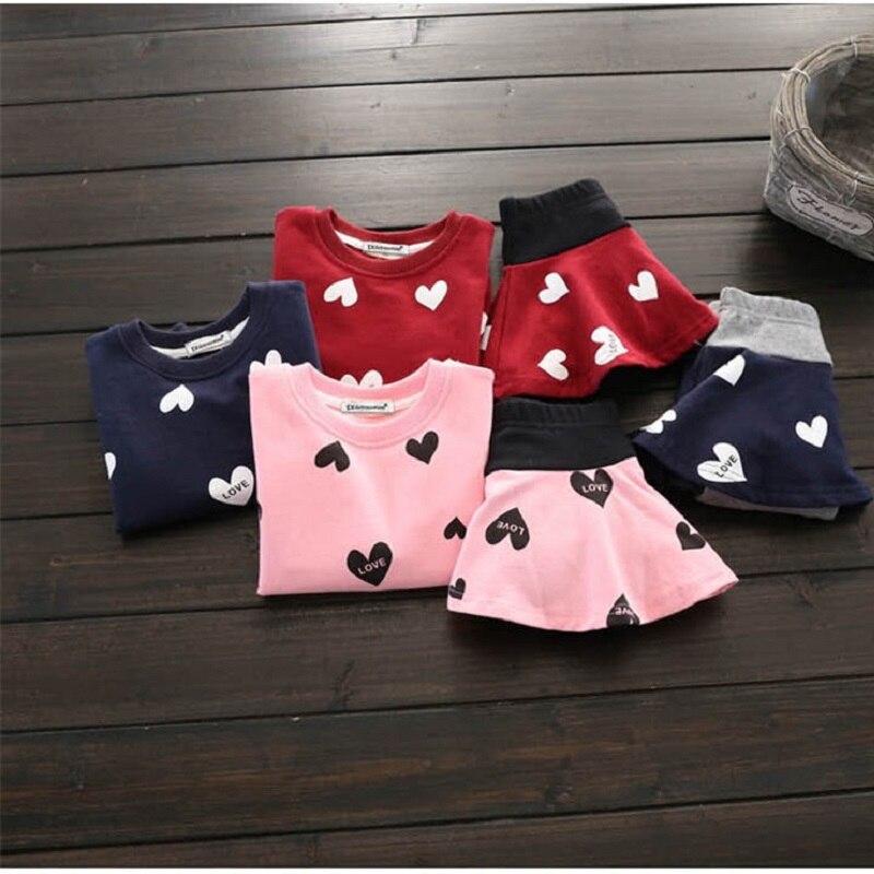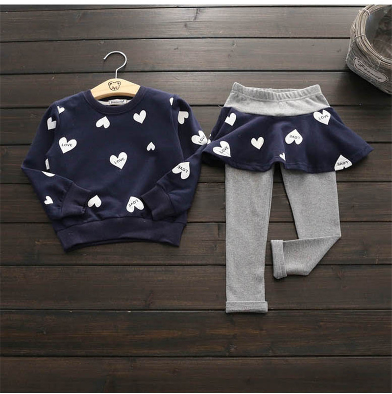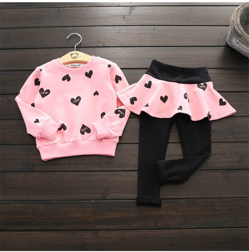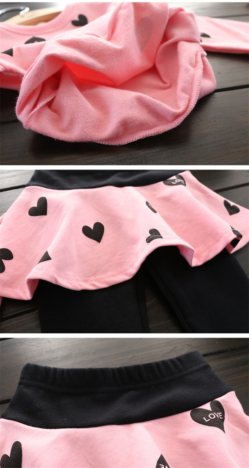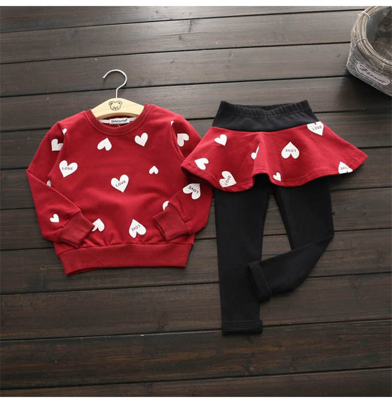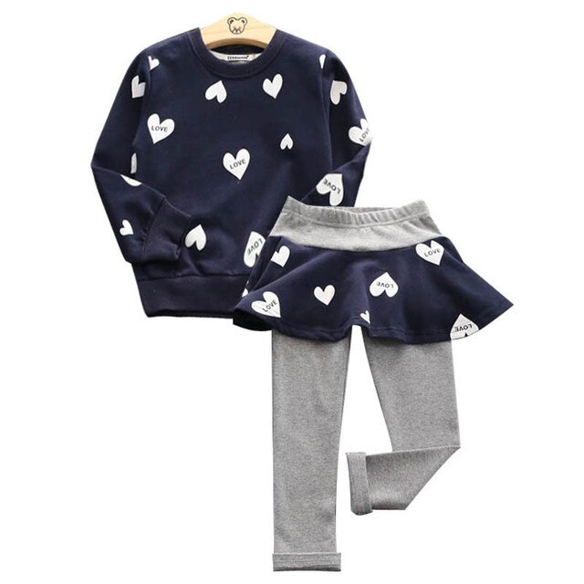Весенняя Толстовка для девочек Брюки Детская любовь Хлопковая футболка с длинным рукавом + Юбка Леггинсы Костюм От 3 до 8 лет