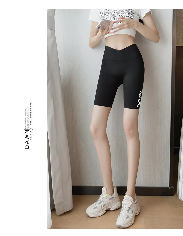 Брюки с перекрестной талией и пятиконечными акулами, женская одежда, лето 2023, тонкие леггинсы, велосипедные брюки с завышенной талией, штаны для йоги