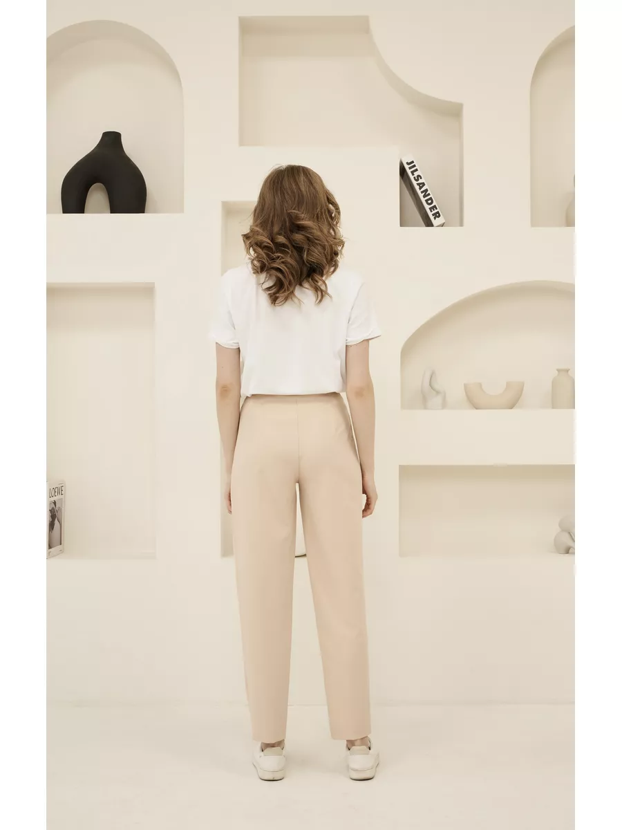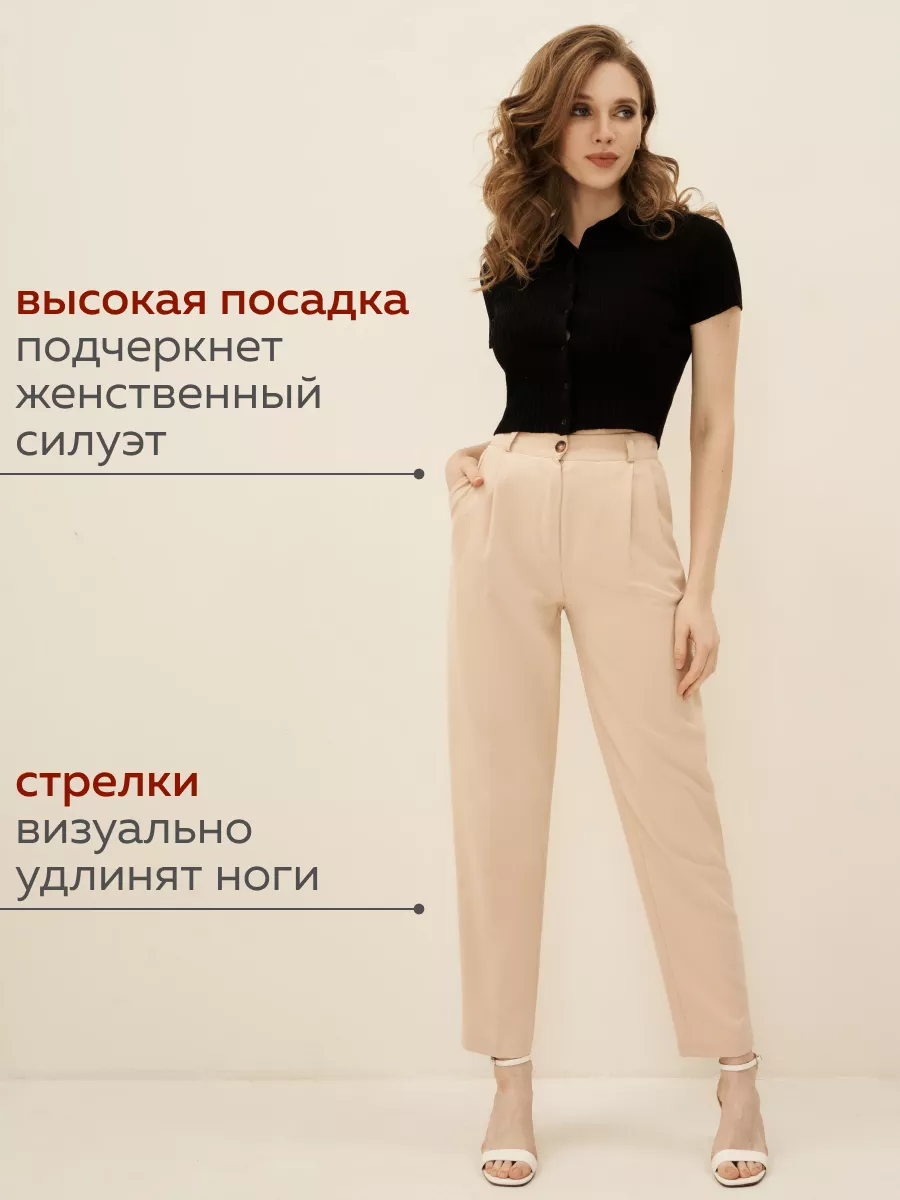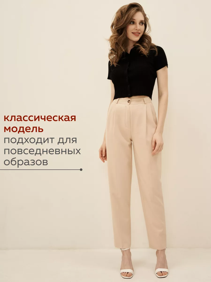 Брюки женские классические бежевые штаны с высокой посадкой