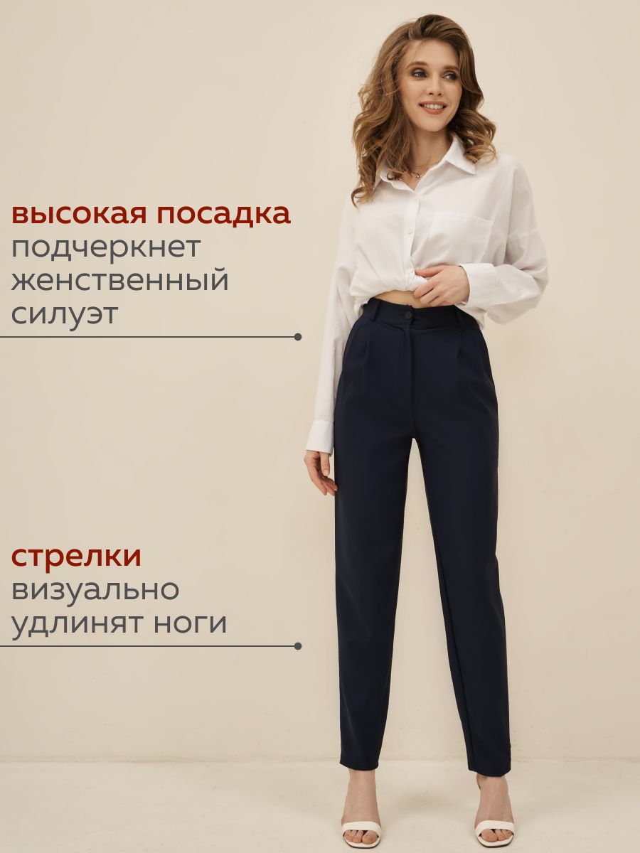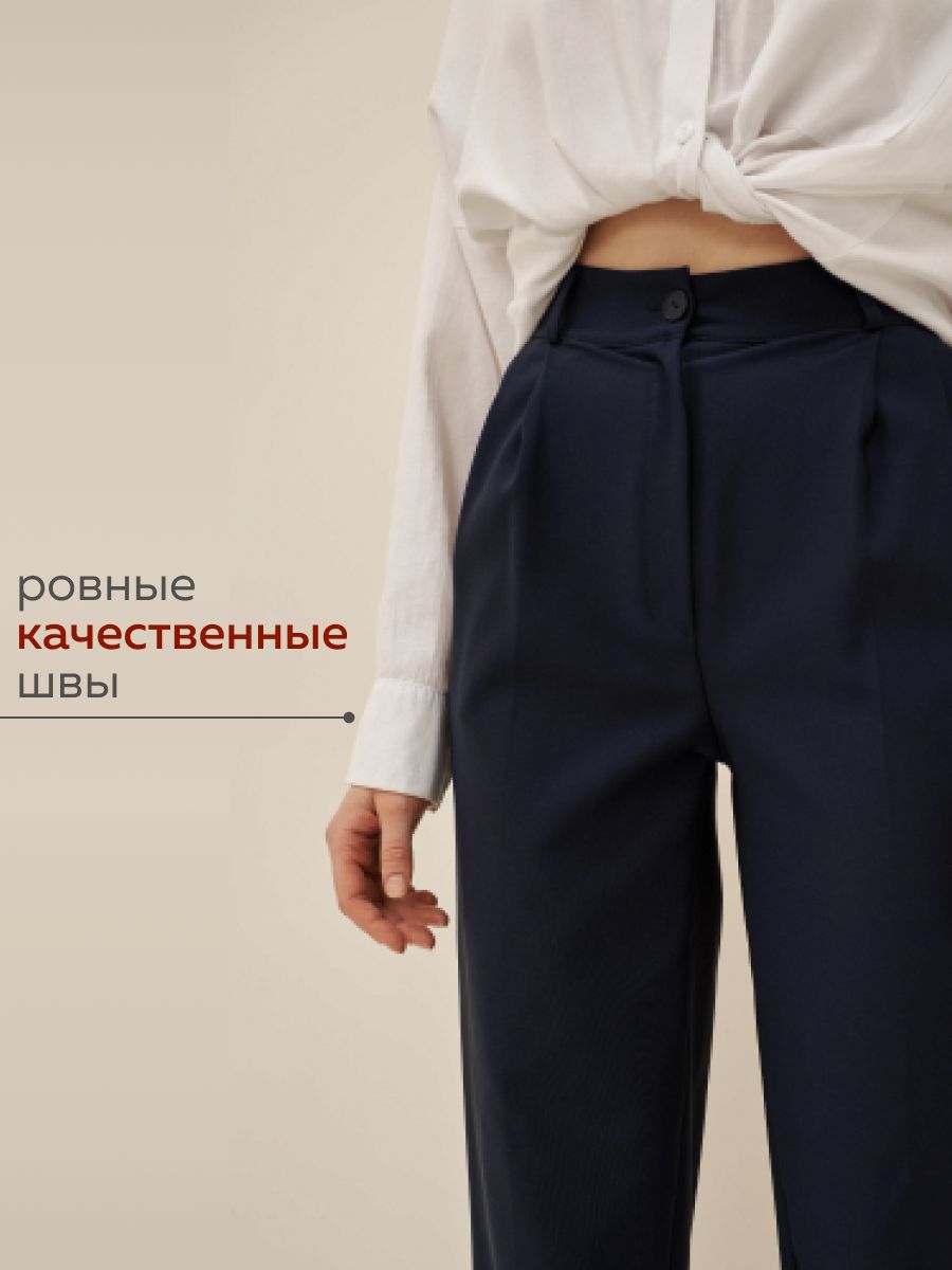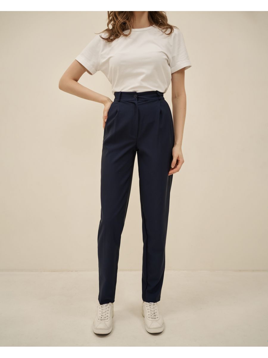 Брюки женские классические синие штаны с высокой посадкой