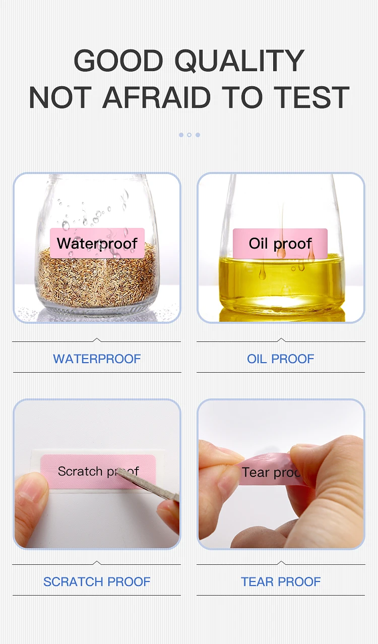 Features: Waterproof, oil proof, strong adhesive, print clearly, no ink to print
