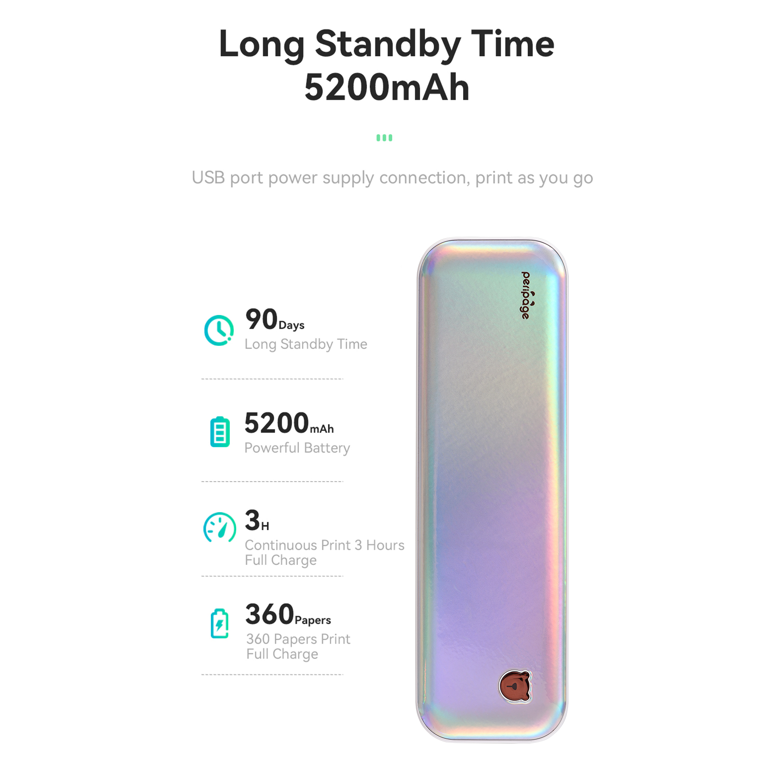 【Удобно для вашей жизни】 компактный размер-265x80x45 мм/10,4x3,1x1,8 дюйма. Встроенные аккумуляторные батареи 2 шт. 2600 мАч, которые могут непрерывно печатать 3 часа после полной зарядки, длительное время ожидания 90 дней, отлично подходят для деловых поездок, школы и т. д. Вы можете распечатать счета-фактуры, контракты, списки и документы экзаменов на месте с помощью телефона или компьютера.