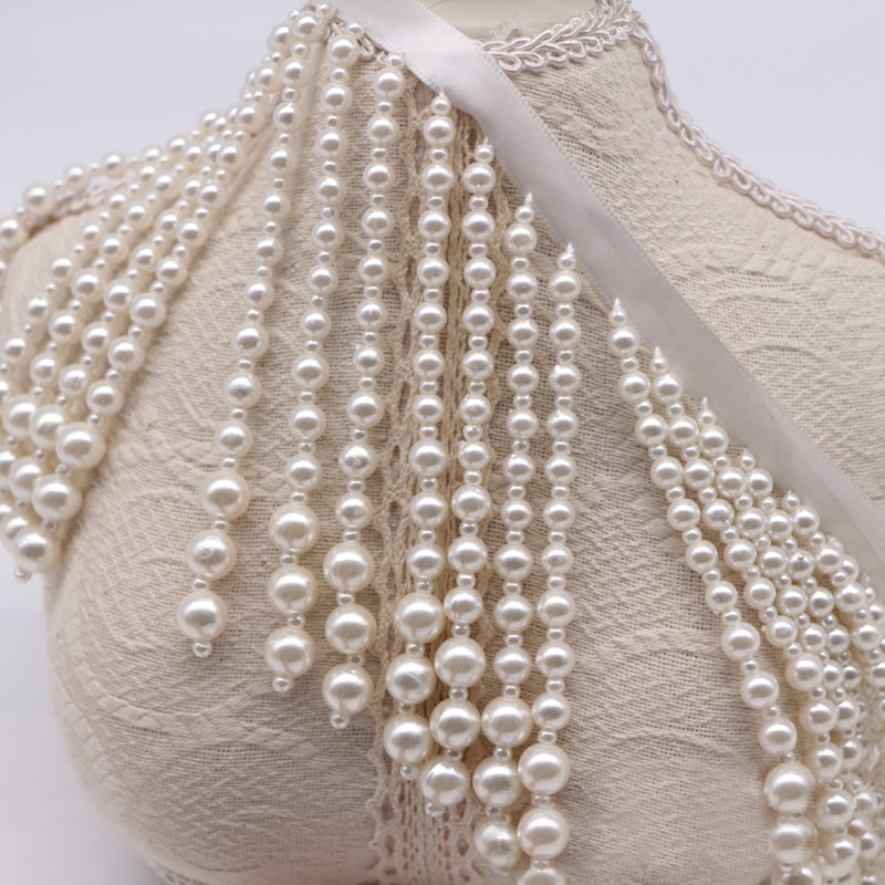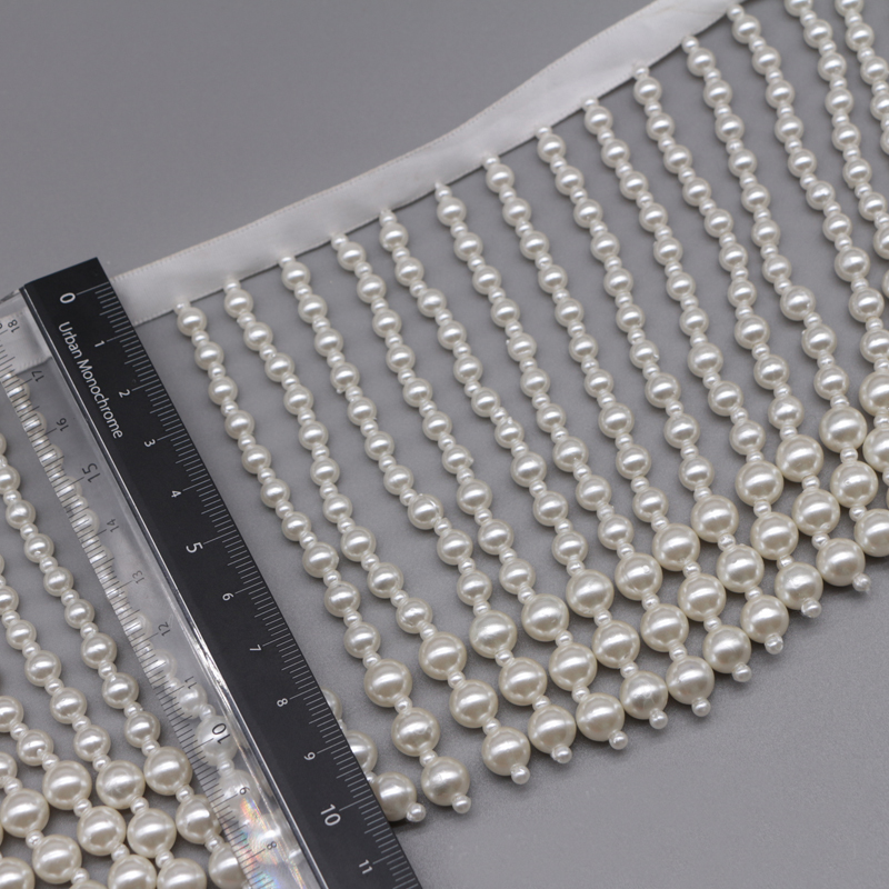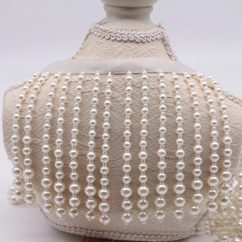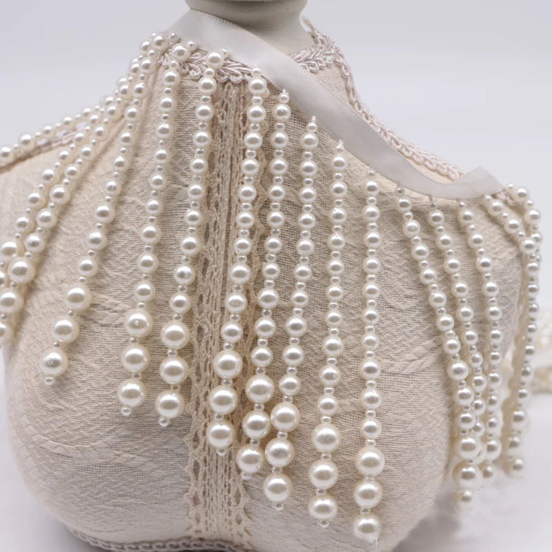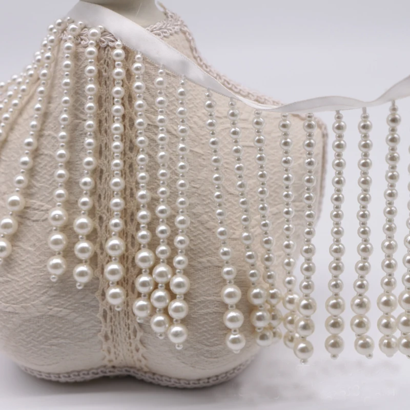 50CM White Silk Fringe Trim Pearl Tassle Beaded Lace Ribbon DIY Sewing Clothing Edge Curtain Pearl Pendant Tassels