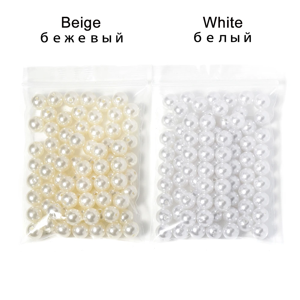 Бусины с имитацией под жемчуг, круглые бусины белого и бежевого цвета с отверстием для бижутерии «сделай сам», 400-20 шт., 4/5/6/8/10/12/14 мм