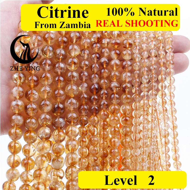 Бусины Zhe Ying 100% из натурального цитрина 5 А для изготовления ювелирных изделий, высококачественные круглые бусины из драгоценных камней для самостоятельного изготовления браслетов и ожерелий, 15 дюймов