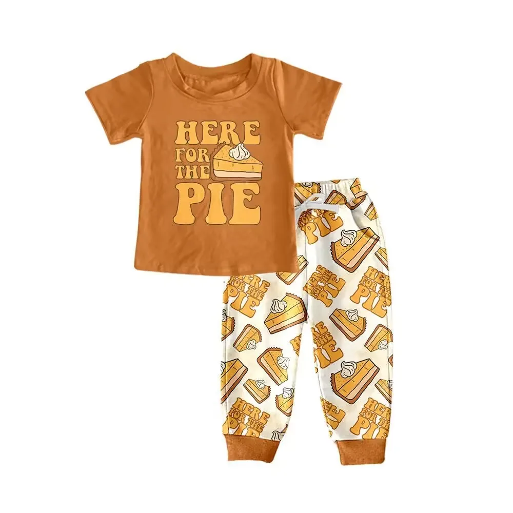 Бутик Дети Семья наряды с коротким рукавом здесь для пирога сэндвич мальчиков Одежда для девочек комплекты