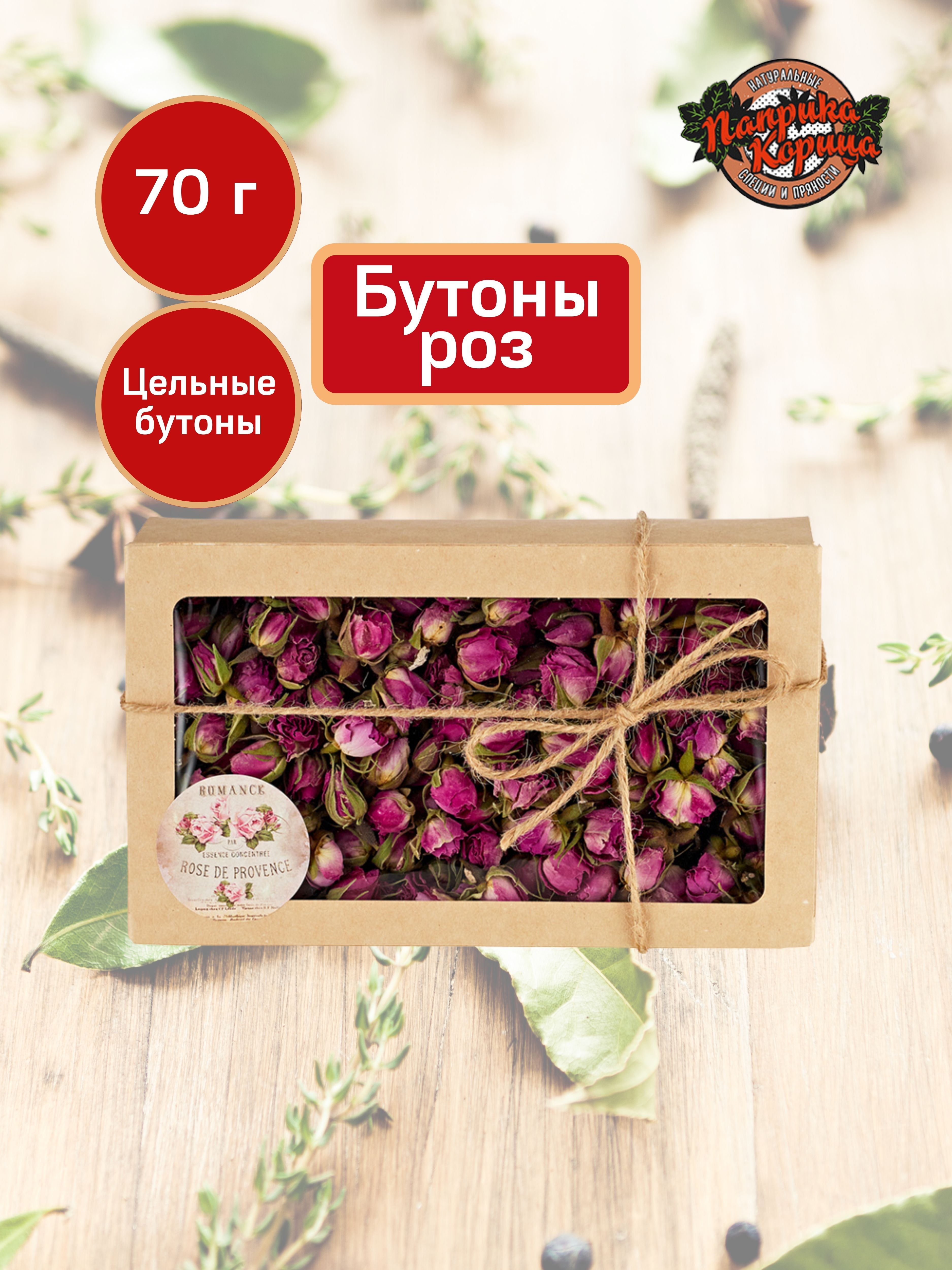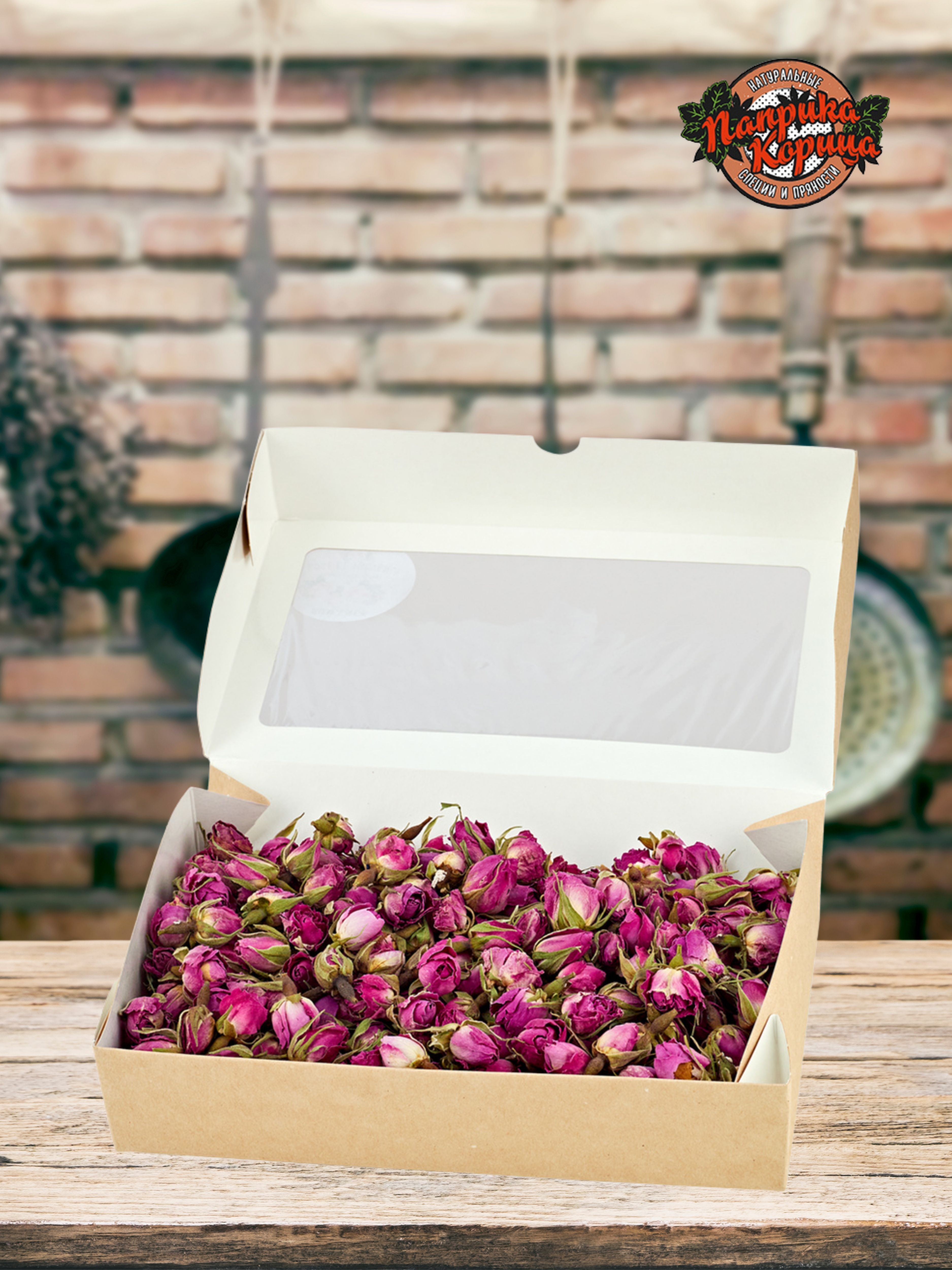 Описание: Бутоны роз (70 гр) - цельные сушеные соцветия с ярким ароматом и приятным вкусом. Вариантов применения бутонов множество. Такие розы добавляются при заваривании чая, из них изготавливают варенье и кремы для муссов и бисквитов. Кондитеры используют бутоны как украшение тортов, а в интерьере розы станут романтичным декором и натуральным ароматизатором. Сушеные соцветия применяются в мыловарении.