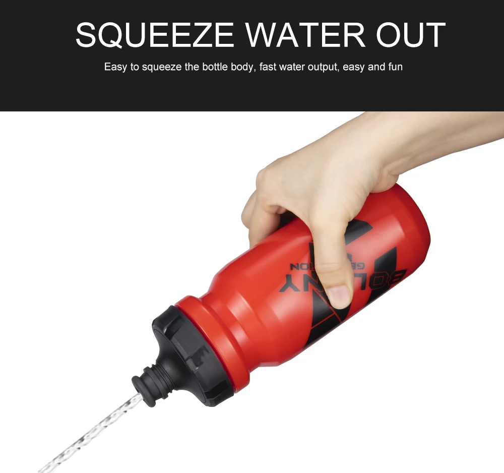 BPA-free bottle is flexible for easy squeezing and fast water delivery.