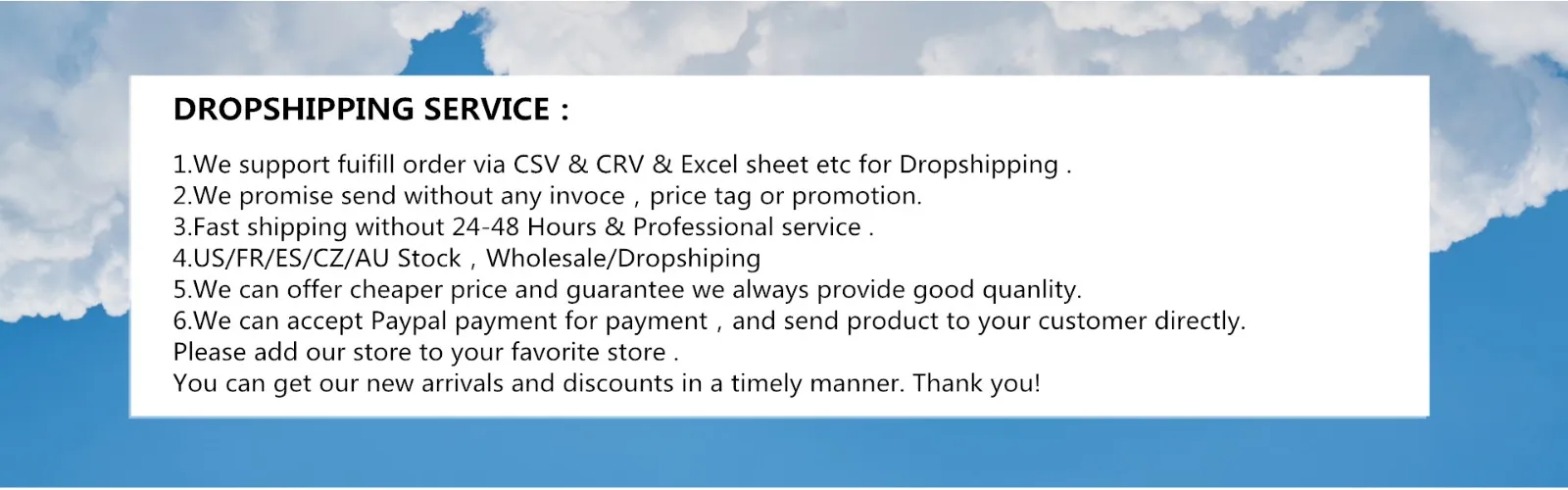 Support Dropshipping/Wholesale