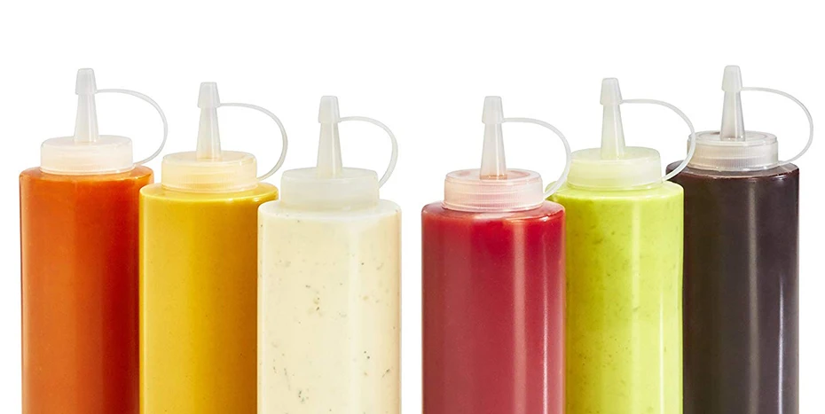 3. 【Незаменимое дополнение к вашей кухне, барбекю, свадьбе, обедам, etc】 идеально подходит для хранения всех приправ: соус для барбекю, оливковое масло, кетчуп, горчица, Майо, горячий соус, смесь блинов, кленовый сироп, салатная одежда, ранчо и т. Д.