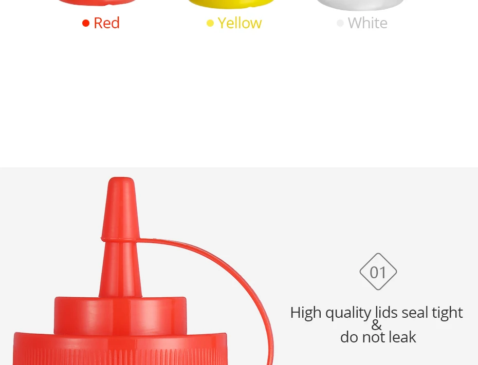 1.【NO беспорядок колпачки прилагаются к lids】 так что вам не придется беспокоиться о потере их. Крышки надежно крепятся, чтобы ваши колпачки оставались на бутылке при выдавливании.