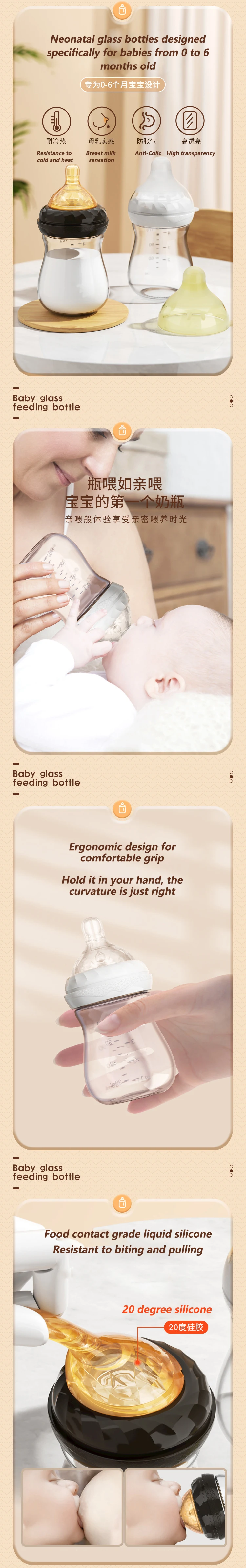 Бутылочка для новорожденных младенцев от 0 до 6 месяцев имитация грудного молока широкий диаметр защита от вздутия детская стеклянная бутылочка Детская Бутылочка для младенцев