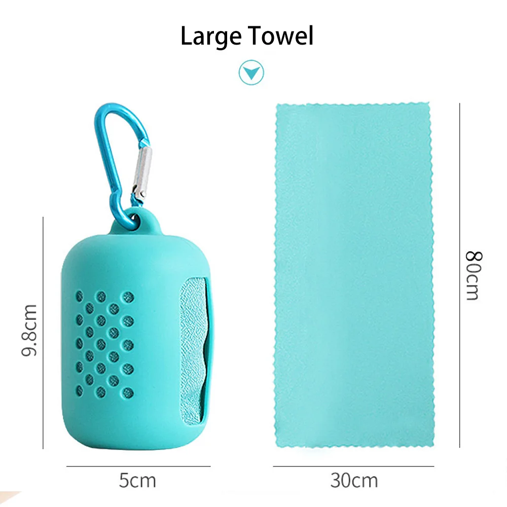 Быстрая Сушка микрофибры полотенце, полотенце для спорта, бега, кемпинга, портативное полотенце для фитнеса, тренажерного зала, йоги, пляжа, путешествий, силиконовая сумка