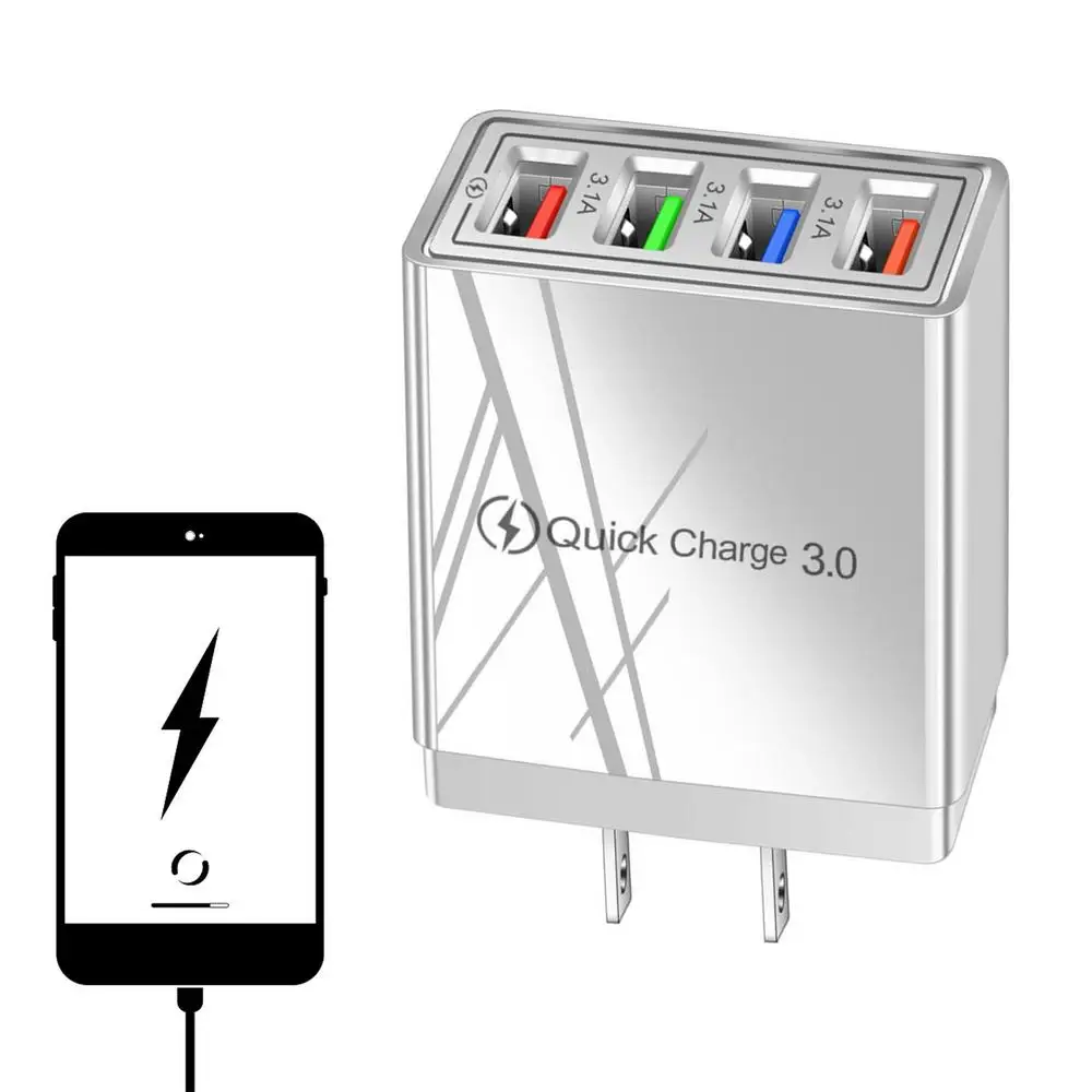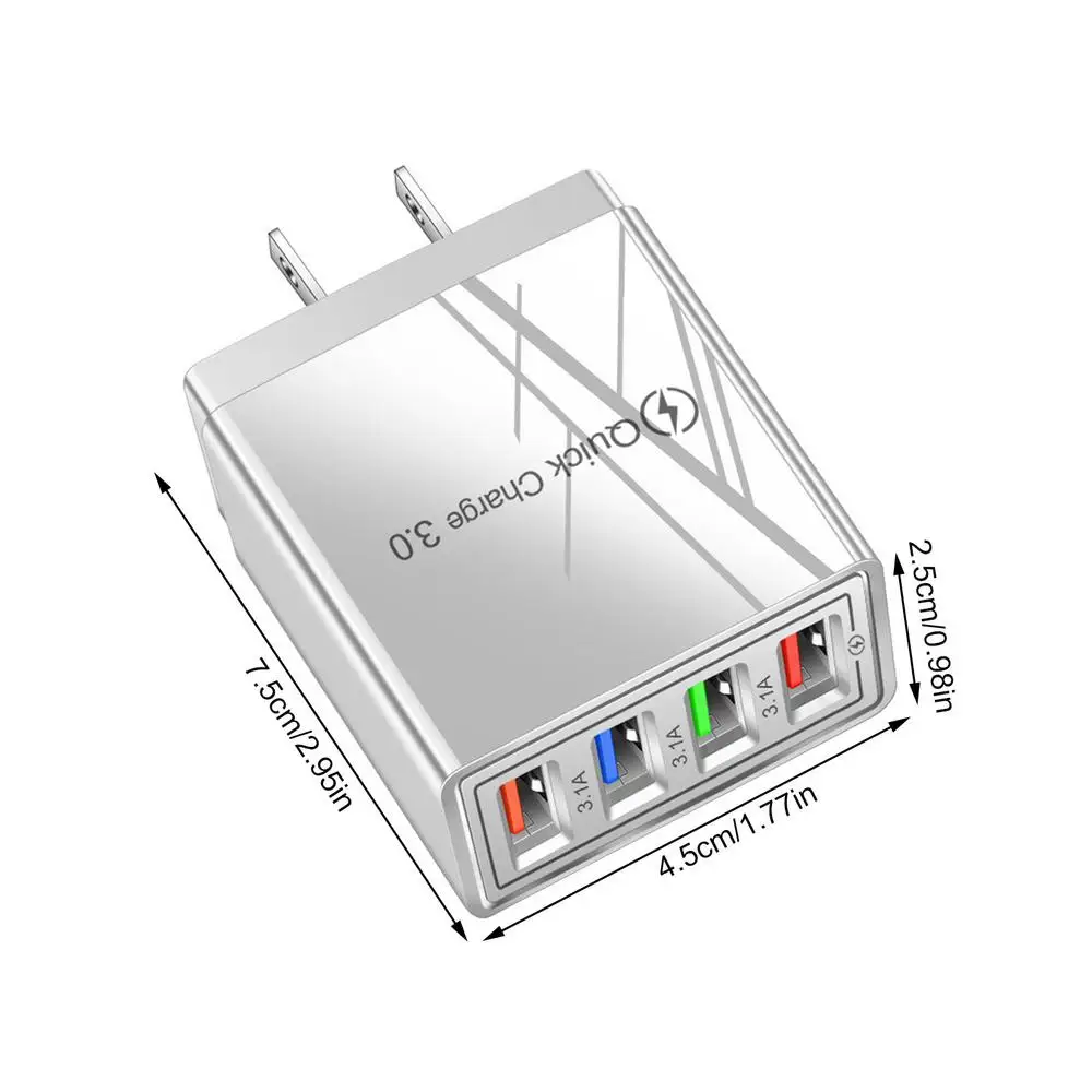 Зарядное устройство USB QC3.0 мощностью 1, 100 Вт: это настенное зарядное устройство USB оснащено технологией Quick Charge 3,0, обеспечивающей мощный высокоскоростной зарядный выход мощностью 10 Вт. 4 порта могут одновременно заряжать четыре мобильных устройства на высокой скорости.