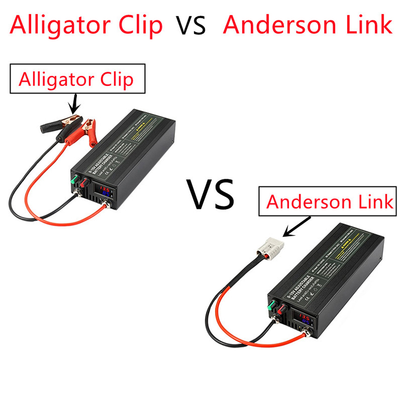 Как использовать зарядное устройство: сначала Подключите шнур питания зарядного устройства к указанному интерфейсу зарядного устройства. После того, как на дисплее отобразится 14,6 В или 12,6 В, подключите к аккумулятору через зажим типа «крокодил» или кабель Anderson. Красный зажим подключается к красной клемме аккумулятора. Черный зажим подключается к черной клемме аккумулятора. Красный-положительный. Черный-отрицательный.