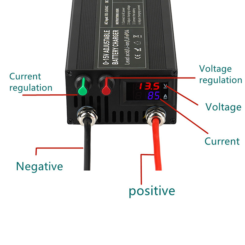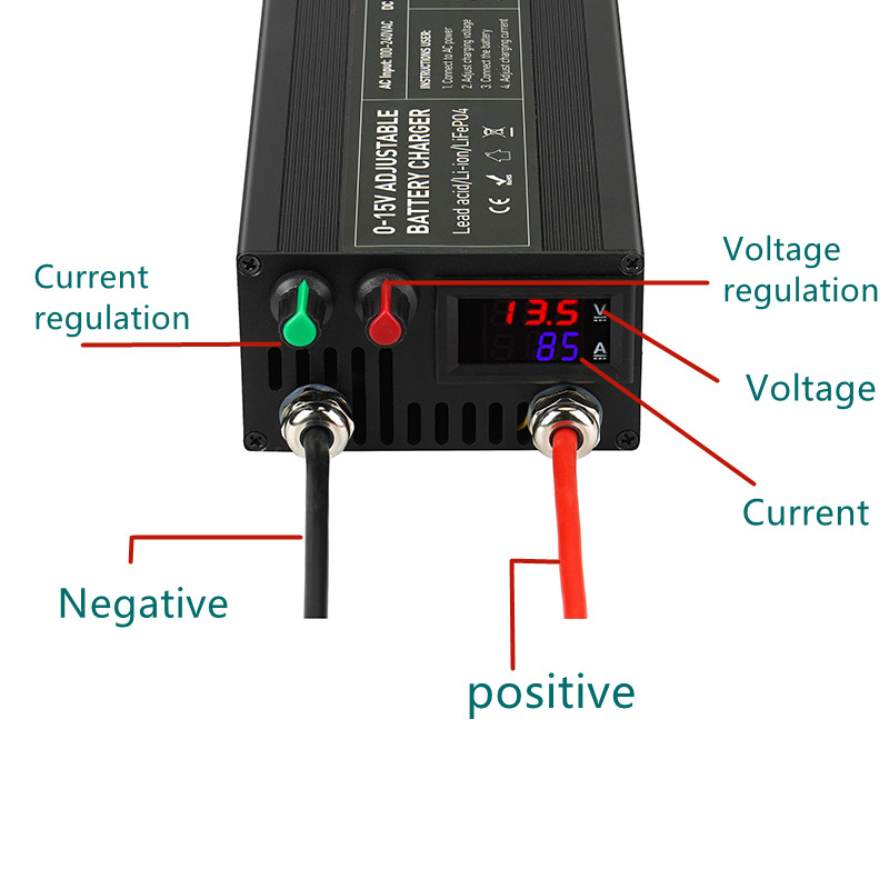 Специальные инструкции для зарядных устройств 60A/85A/100A:Сначала Подключите зарядное устройство к источнику питания ----- посмотрите на напряжение --- отрегулируйте напряжение ----- затем Подключите нагрузку -----, а затем Отрегулируйте ток.