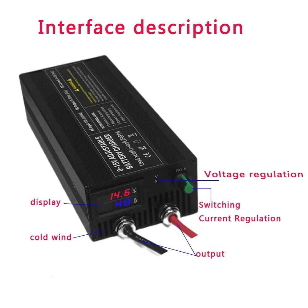 Зарядное устройство на 40 А используется следующим образом: Первое использование: сначала Подключите источник питания --- отрегулируйте напряжение, которое вы хотите --- Подключите аккумулятор --- дисплей зарядного устройства выключится --- отключите источник питания Повторно Подключите вилку -------- нормальный дисплей нормальной зарядки.