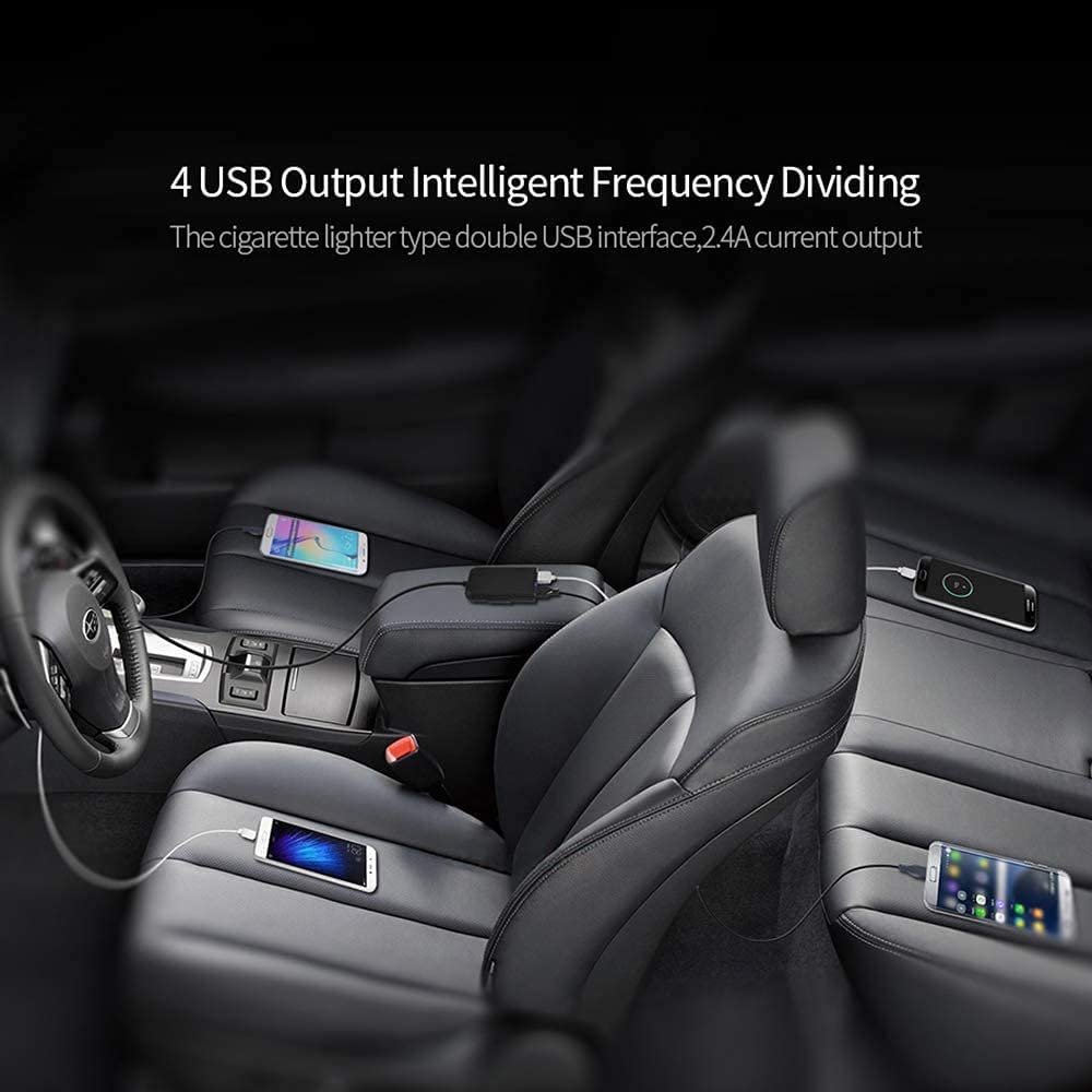 Зарядное устройство для нескольких устройств: 2 порта USB для переднего сиденья и еще 2 порта USB для заднего сиденья.