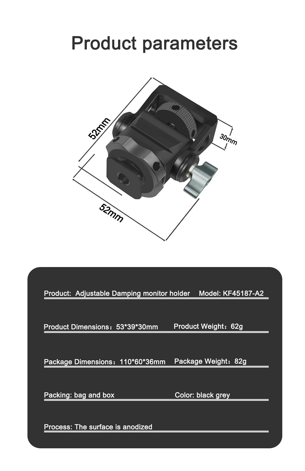 • Поставляется с гаечным ключом для регулировки демпфирования крепления, обеспечивая разнонаправленную поддержку освещения или мониторинга.