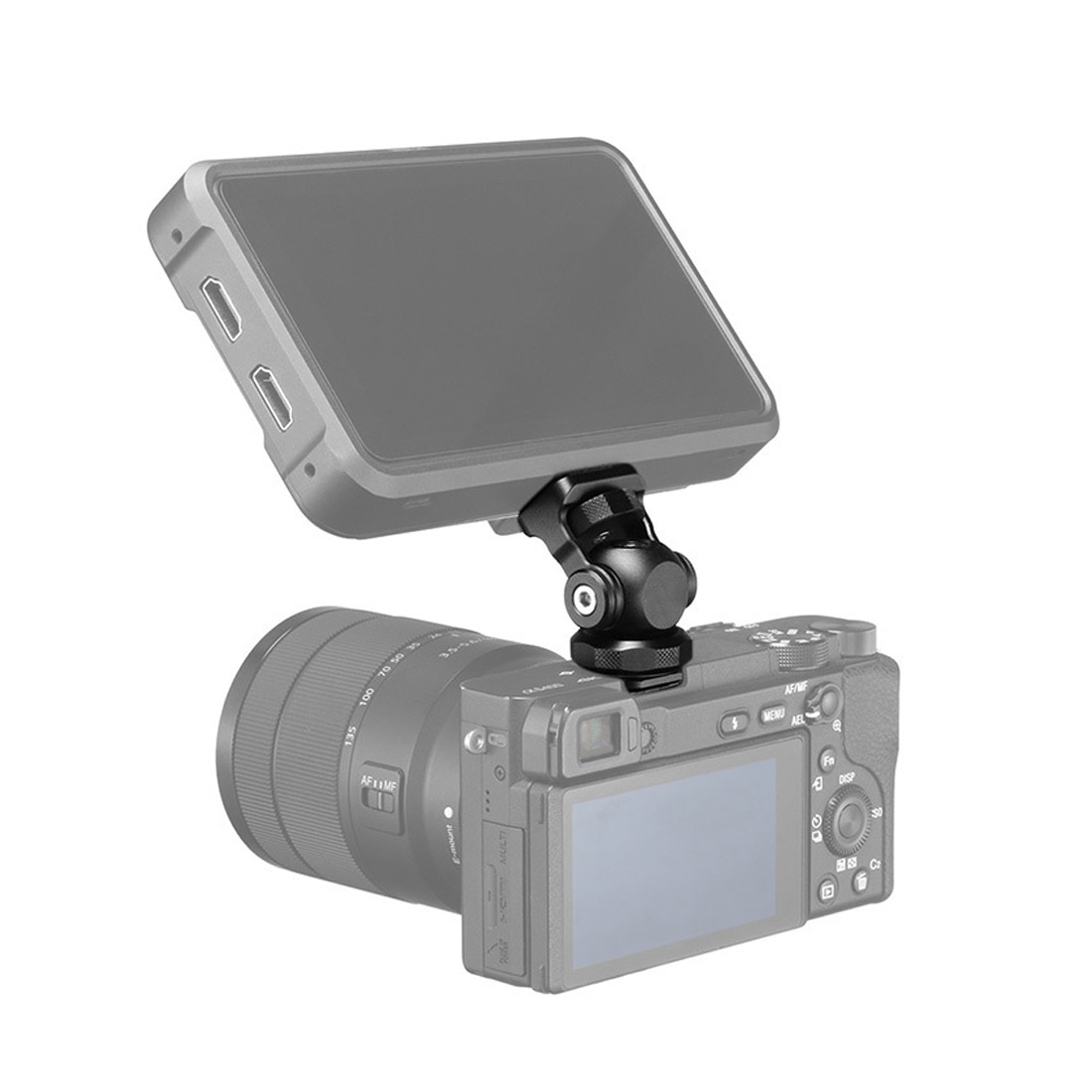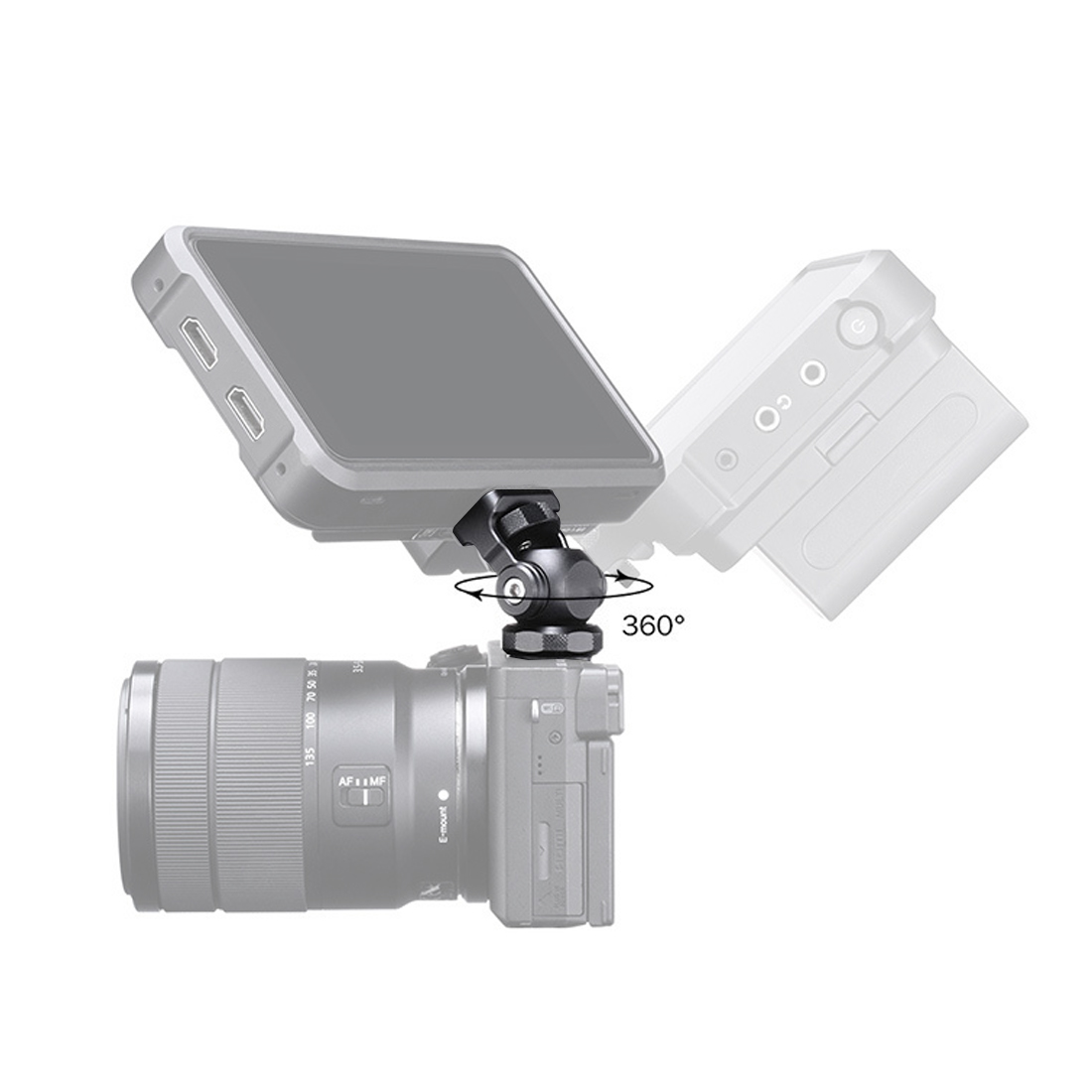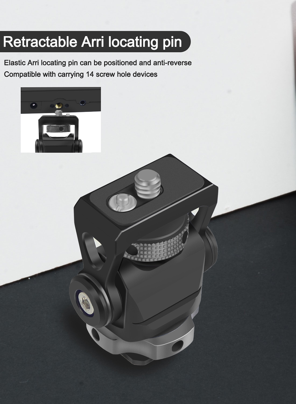 • Он имеет винт 1/4 дюйма сверху, совместим со многими устройствами, такими как монитор, вспышка, микрофон и т. Д.