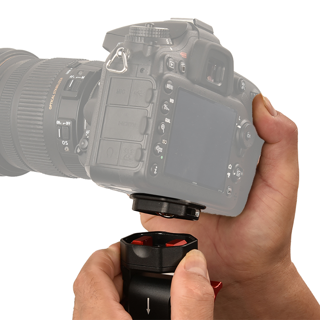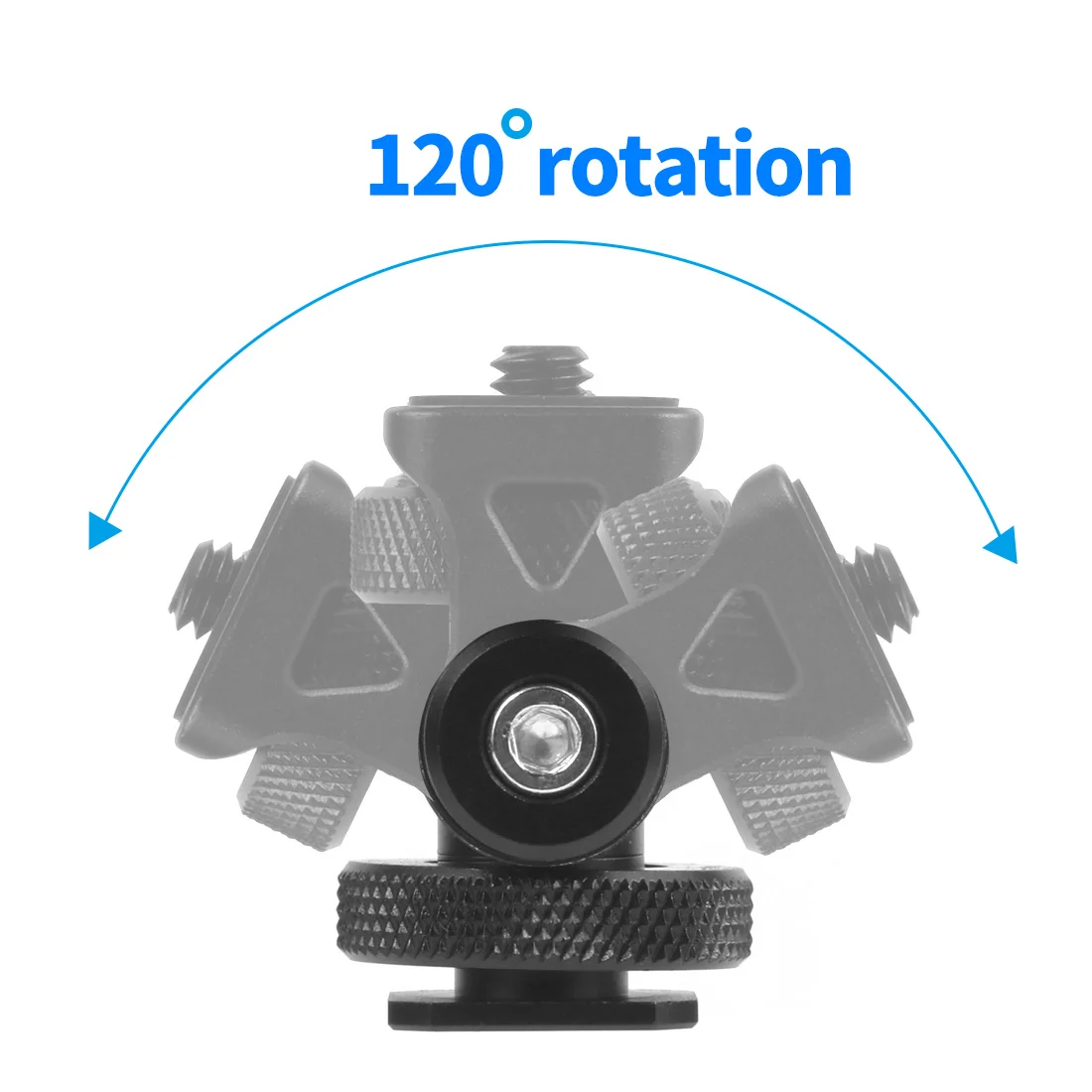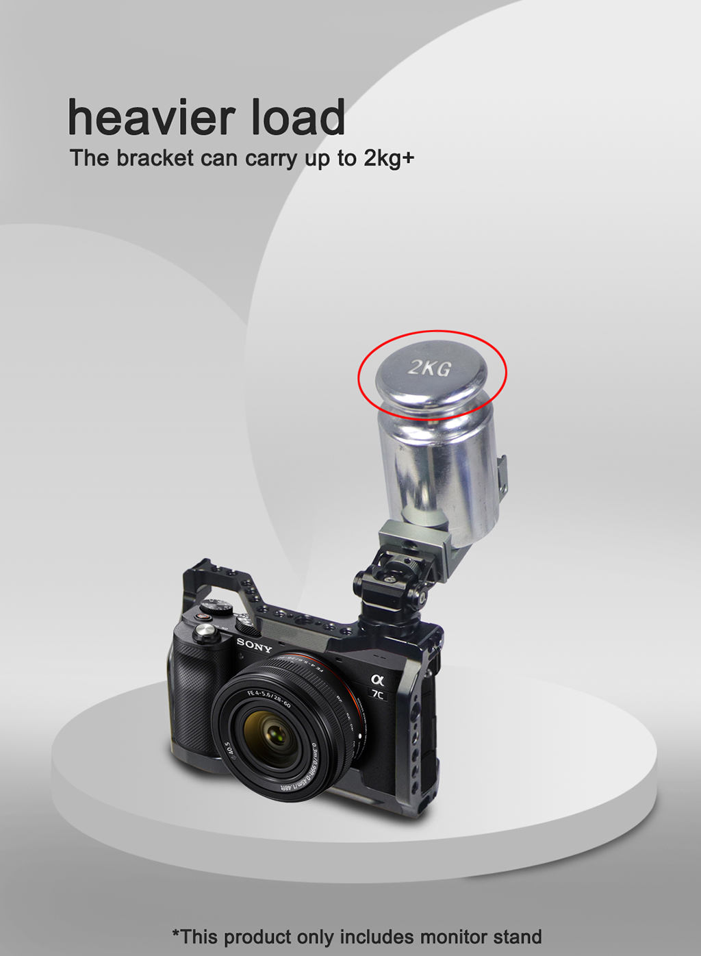 • Он имеет винт 1/4 дюйма сверху, совместим со многими устройствами, такими как монитор, вспышка, микрофон и т. Д.
