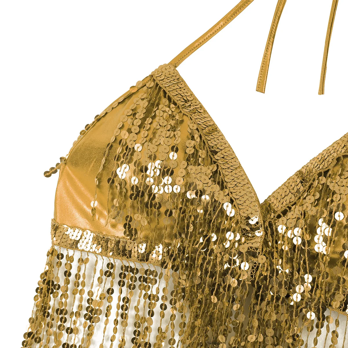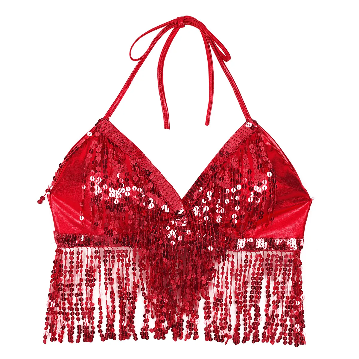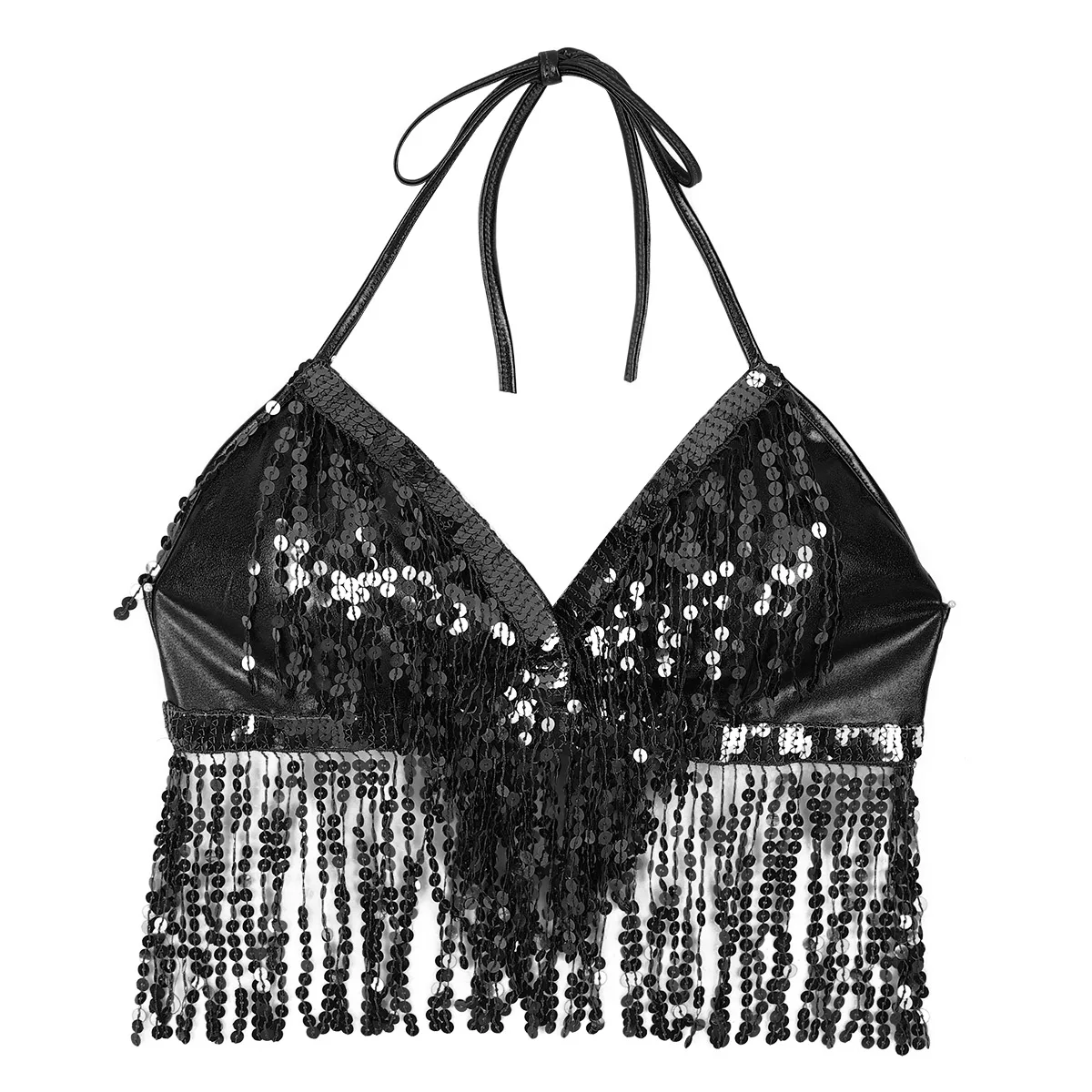 Бюстгальтер женский Блестящий с кисточками и лямкой на шее, топ для выступлений на сцене, костюм для латинского танца живота, клубный вечерний фестивальный Рейв, пикантный кроп-топ