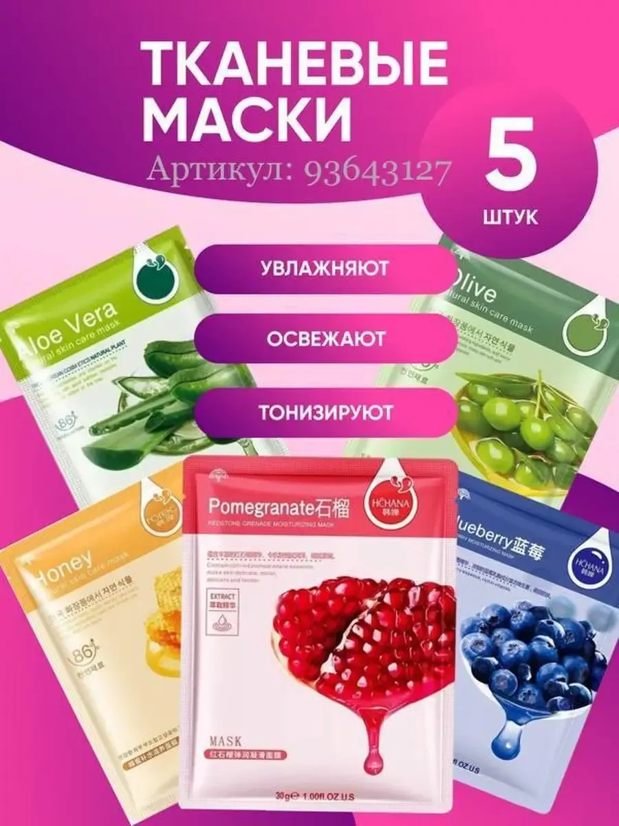 Комплектация маски тканевые 5шт.; патчи для губ 5шт.; патчи для глаз 5шт.