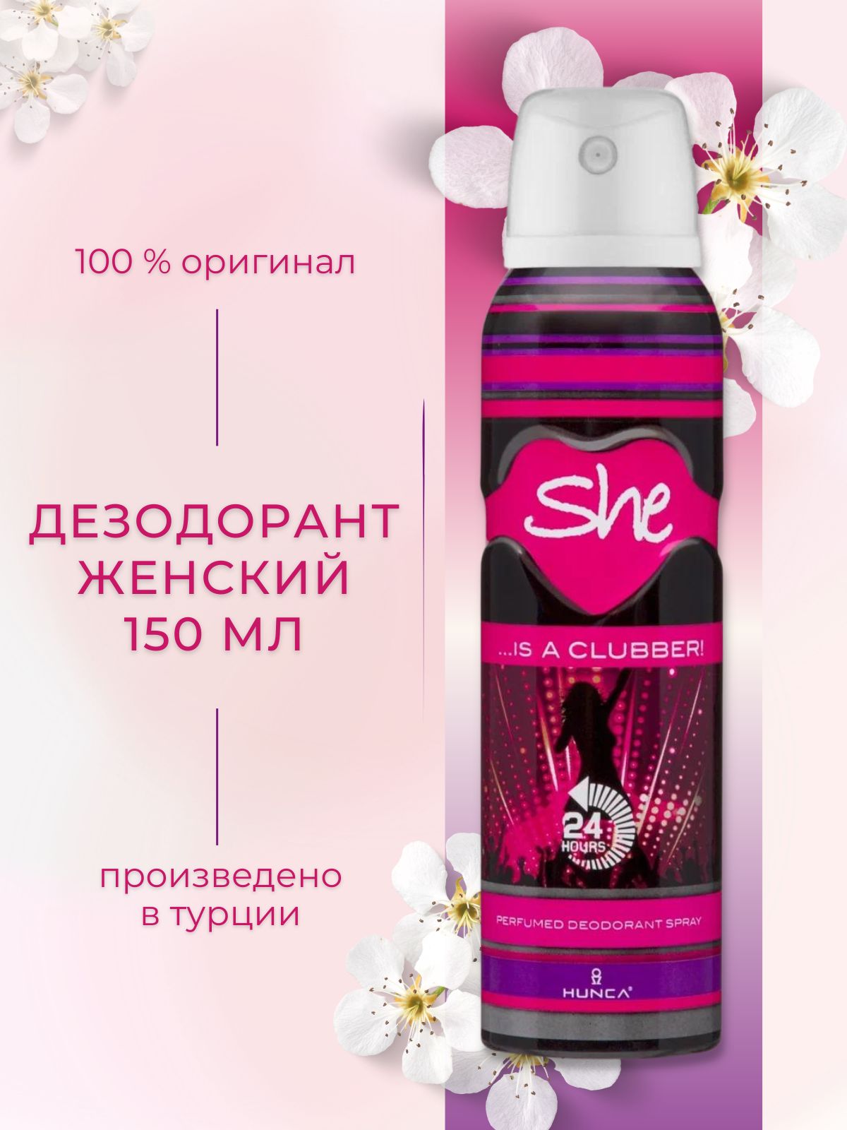 Описание: Освободитесь от обыденной рутины и возьмите парфюмированный женский дезодорант She Is Clubber! Клубный спрей для женщин от Hunca - это уникальное и освежающее дополнение к Вашей коллекции, которое обязательно завоюет Вашу любовь. Создайте себе настроение с парфюмированным дезодорантом, бросьте вызов жизни, отразив свой красочный мир в ритме зажигательного танца, который не оставит никого равнодушным. Парфюмированный дезодорант помогает предотвратить появление запаха пота, сохраняет свежесть на весь день и устойчивость на 24 часа. Верхние ноты: красные, белые фрукты. Средние ноты: белые цветы, жасмин. Базовые ноты: пудры, ванили, янтаря, мускуса. Идеален для праздничного использования и для подарка.