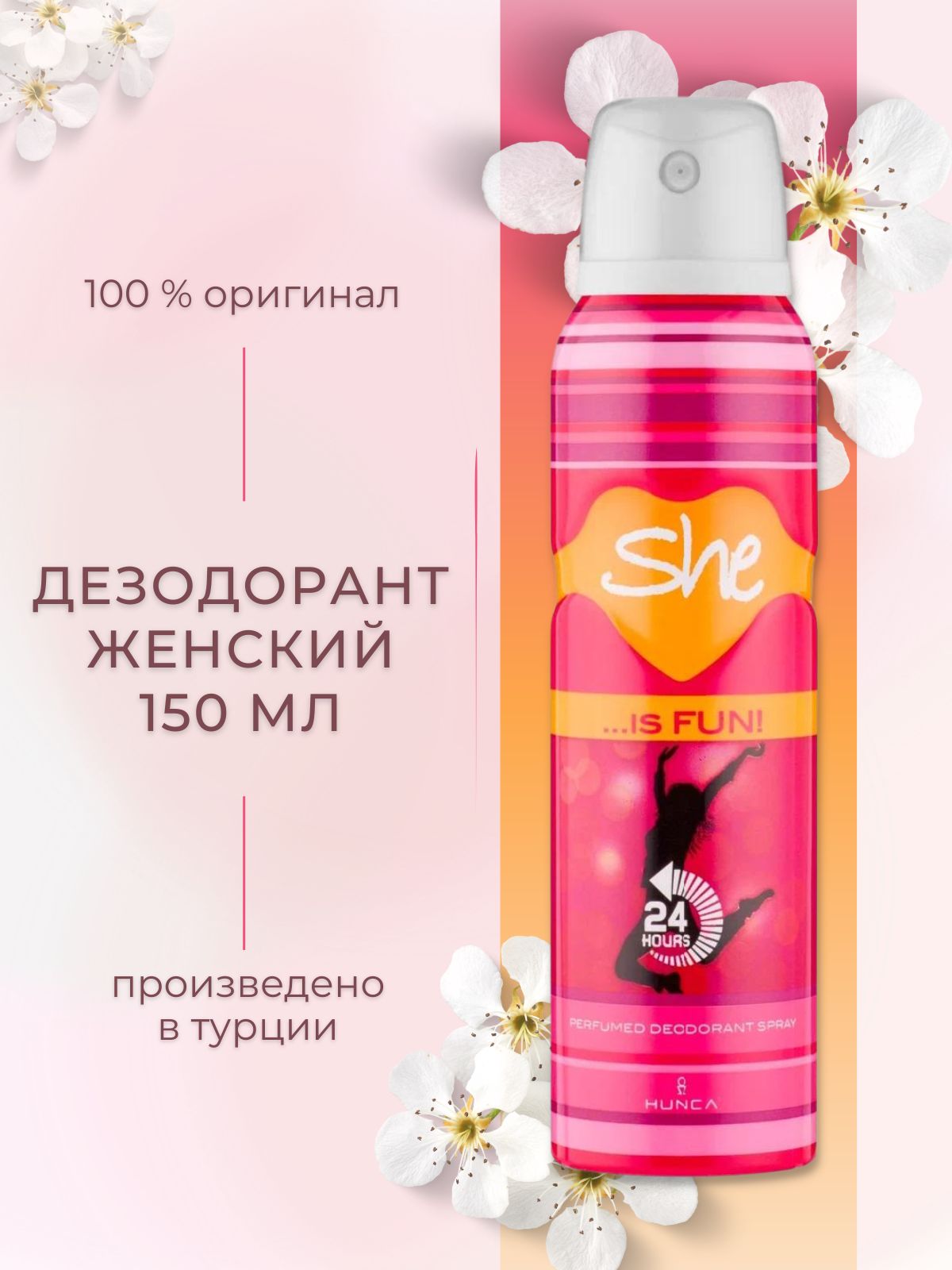 Описание: Освежающий женский парфюмированный дезодорант She Is Fun заставляет кружиться головы. Этот аромат - идеальный способ сохранять свежесть и уверенность в себе на протяжении всего дня. В нём вы найдете свежесть цветов и фруктов с нотами веселья и растворитесь в глубинах романтики. Парфюмированный дезодорант женский Hunca She is Fun - это аромат с цветочной-фруктовой композицией. She is Fun открывается верхними нотами грейпфрута, персика, дыни, яблоневого цвета, апельсина и абрикоса, средние ноты составляют оттенки пиона и белой фрезии, а база представлена нотами сандалового дерева и мускуса. Парфюмированный дезодорант помогает предотвратить появление запаха пота, сохраняет свежесть на весь день и устойчивость аромата на 24 часа.