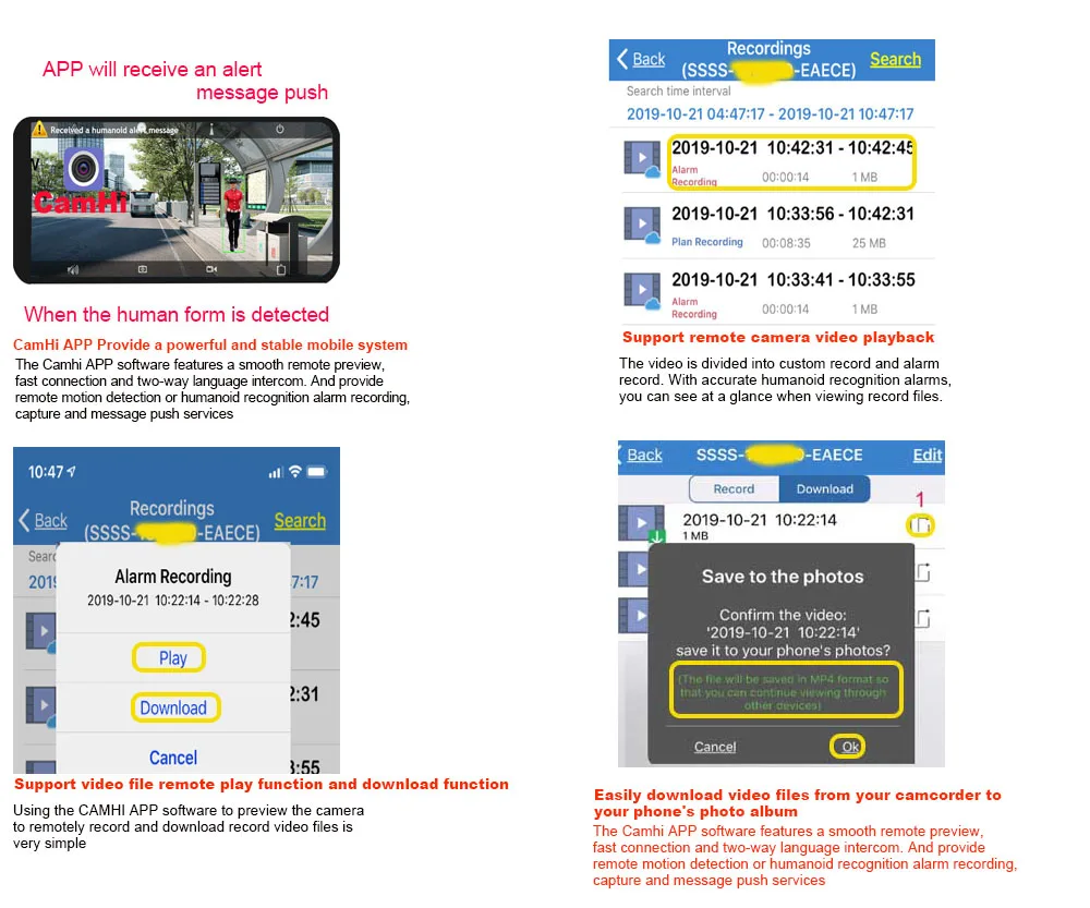 Поддержка гуманоидного распознавания для запуска записи sd-карты, захвата sd-карты, голосовой сигнализации, нажатия сообщений, сигнализации электронной почты и других функций.