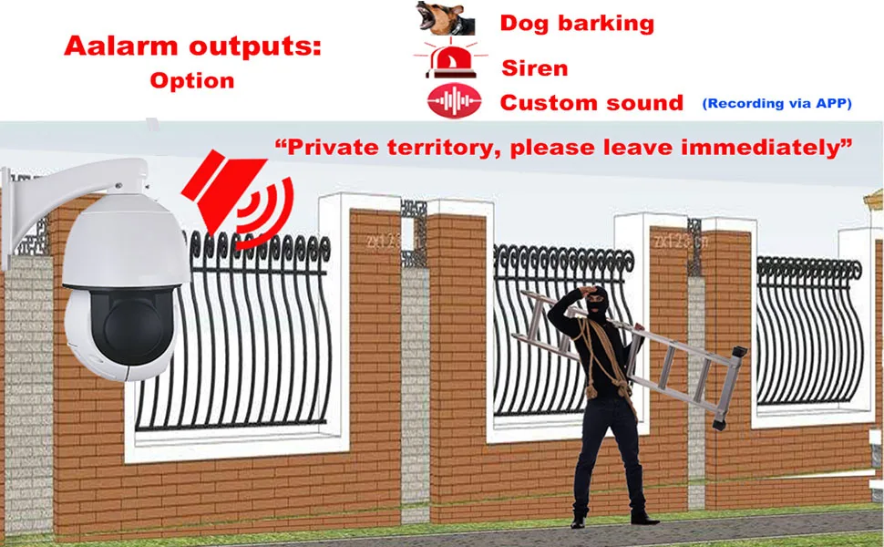 Вы можете включить это и выбрать звуковую категорию, в настоящее время поддерживает лай собаки, звуковой сигнал, зону оповещения, зону мониторинга, добро пожаловать, предупреждение о глубоководной воде, частный сектор, опасную зону, ценные вещи, предупреждение Хайленд, частные автомобили и пользовательские звуки. Когда камера обнаруживает форму человека, рог издаст звуковой сигнал по вашему выбору.