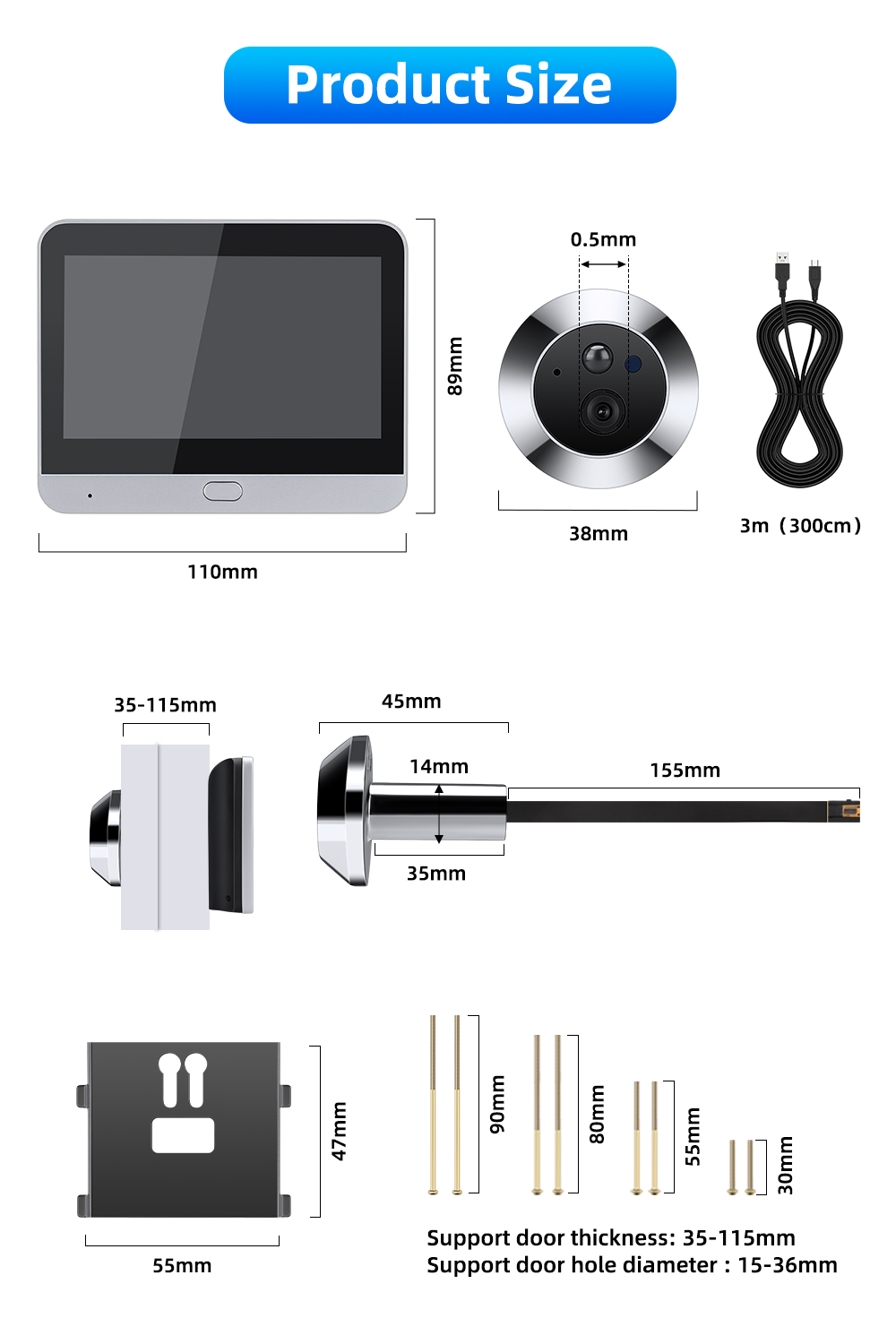 Camluxy Smart Tuya Wi - Fi Дверь Камера 4,3 дюйма 1080P Eye Peephore DoorBell 5000mAh Сигнализация движения