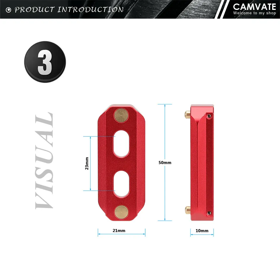 • Стандартная быстросъемная безопасная рейка CAMVATE 50 мм может быть прикреплена через прорезь к любому месту с отверстиями с резьбой 1/4 "-20" и зафиксирована на месте винтами 1/4 "-20 (в комплекте) обеспечить рельс НАТО для внешних аксессуаров.