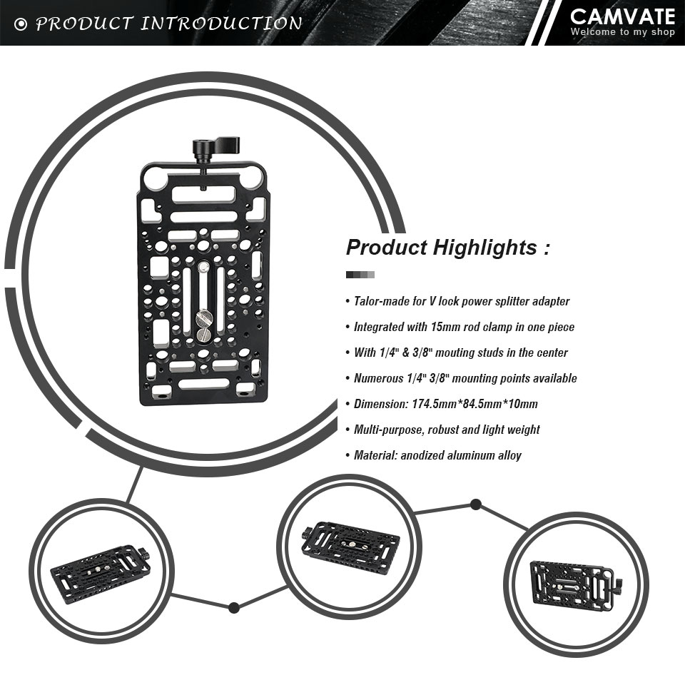 • Эта Сырная пластина CAMVATE Battery Backboard поставляется с 15-миллиметровым зажимом для штанги рельса в одном куске, она идеально подходит для адаптера разветвителя питания пластины источника питания с V-образным замком. Зажим для стержня 15 мм позволяет устанавливать шарнирные рычаги, монитор, преобразовательные коробки и различные другие аксессуары для камеры к системе поддержки стержня.