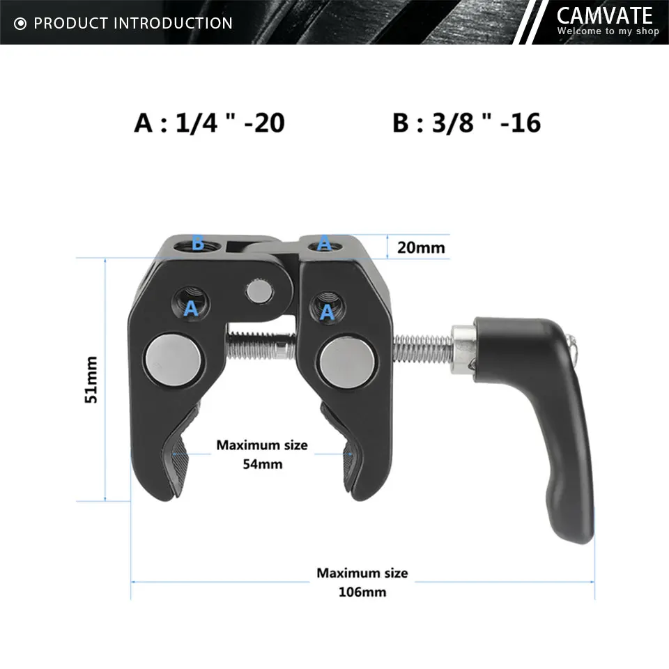 CAMVATE Универсальный Супер Зажим-краб с усиленной винтовой ручкой и 1/4 "-20 монтажных точек для крепления монитора/вспышки/светильник