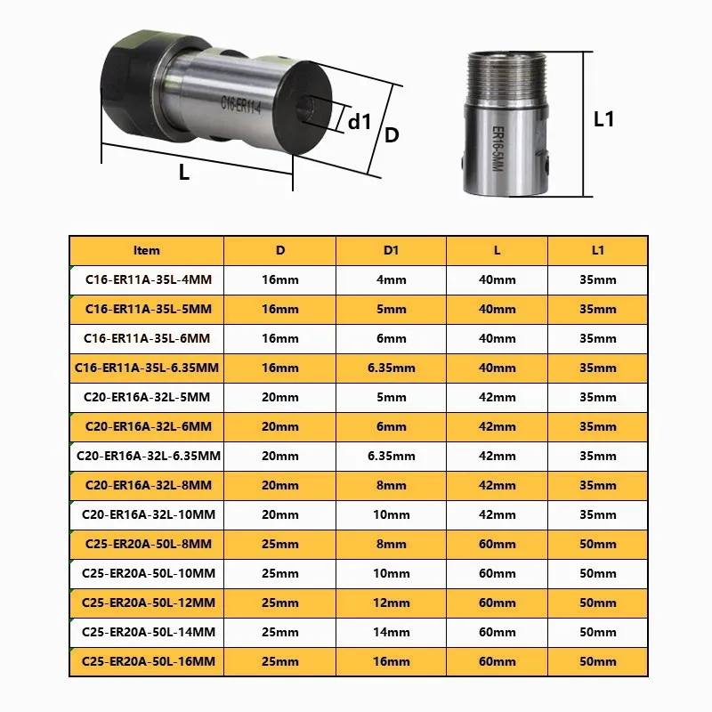 1 шт. ER11 ER16 ER20 4 мм 5 мм 6 мм 6,35 мм 8 мм 10 мм 12 мм 14 мм 16 мм цанговый зажимной вал токарные станки шпинделя расширение стержня фреза зажимные патроны
