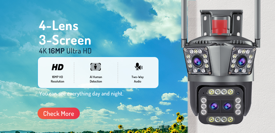 CANSITUM 12 МП HD WIFI IP наружная трехобъективная камера с тремя экранами автоматическое отслеживание движения PTZ водонепроницаемая