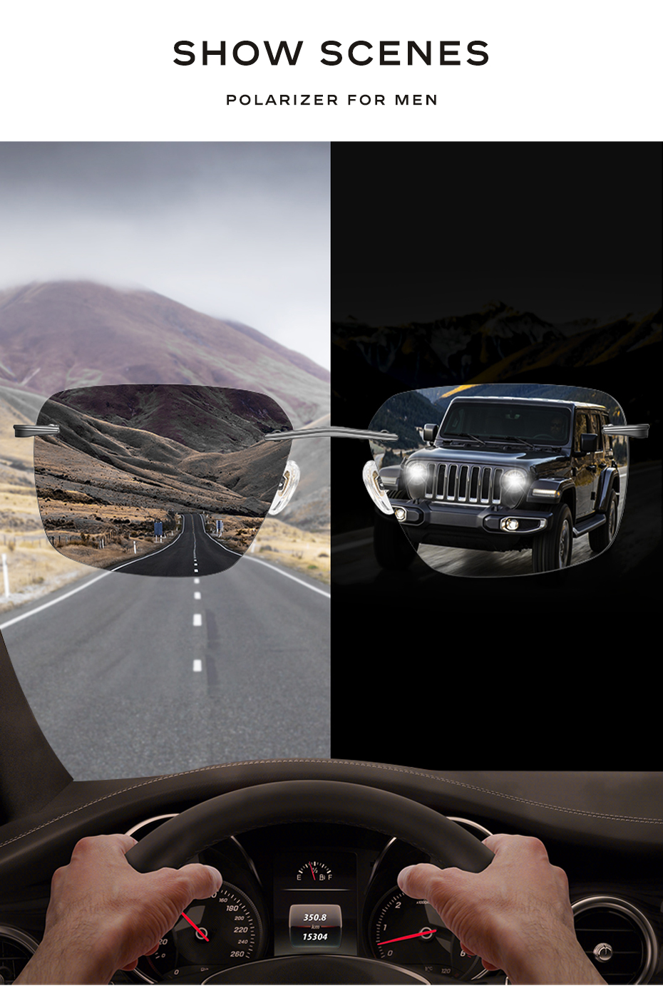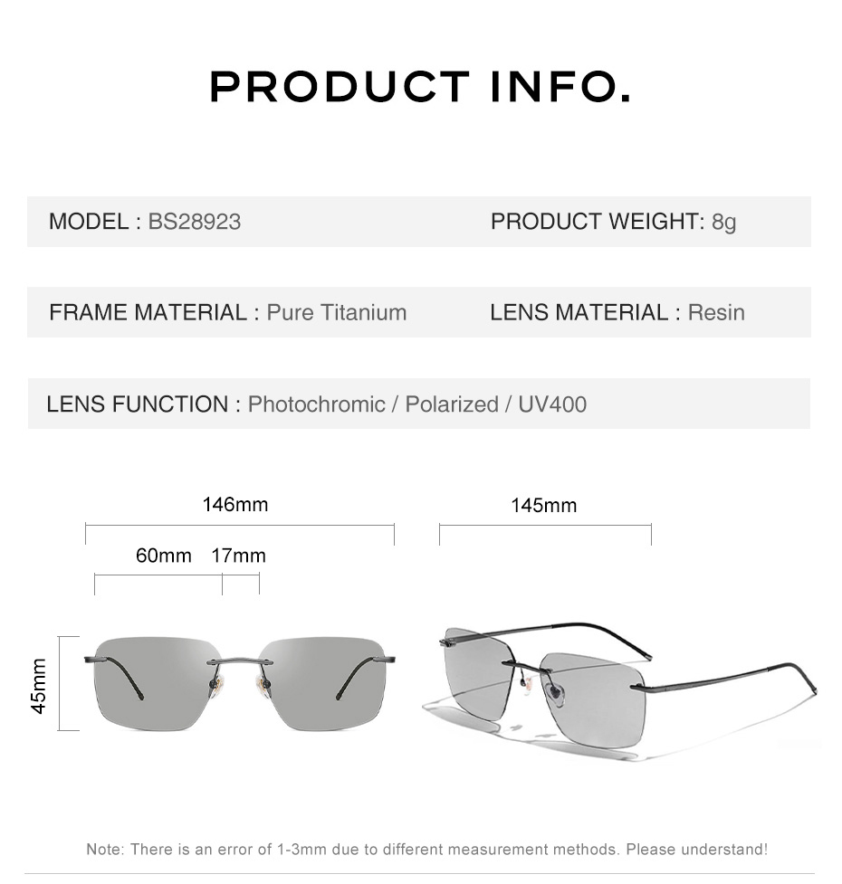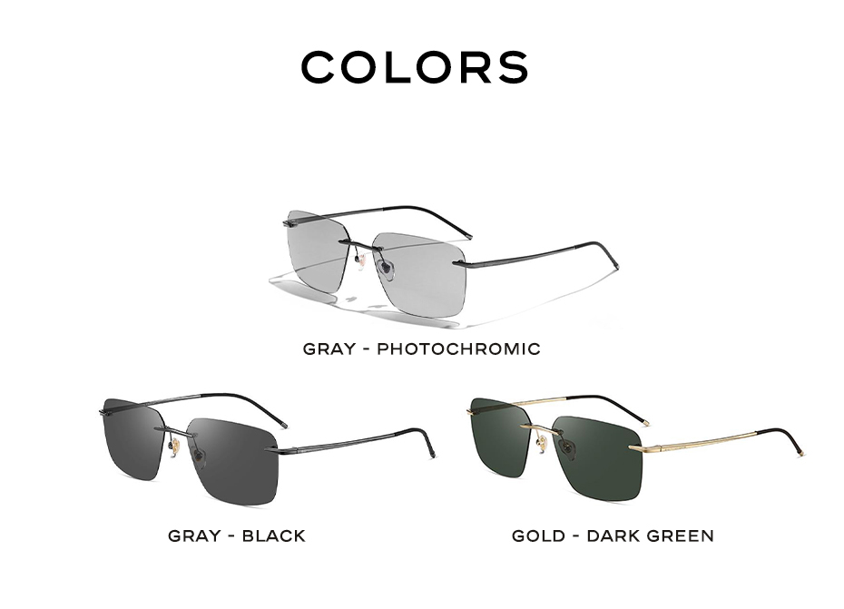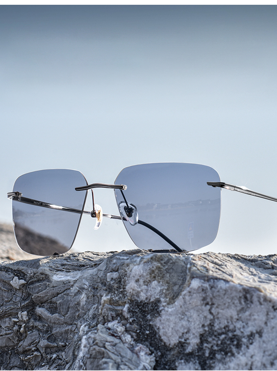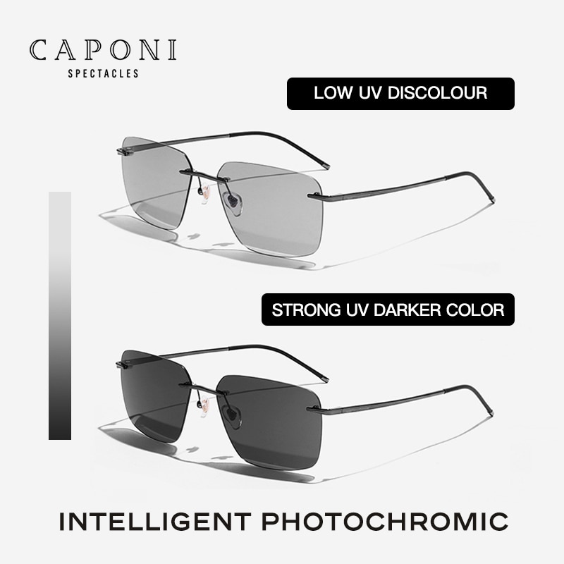 CAPONI Мужские солнцезащитные очки без оправы, поляризационные солнцезащитные очки, фотохромные солнцезащитные очки из чистого титана для вождения, ультратонкие Брендовые очки UV400 BS28923