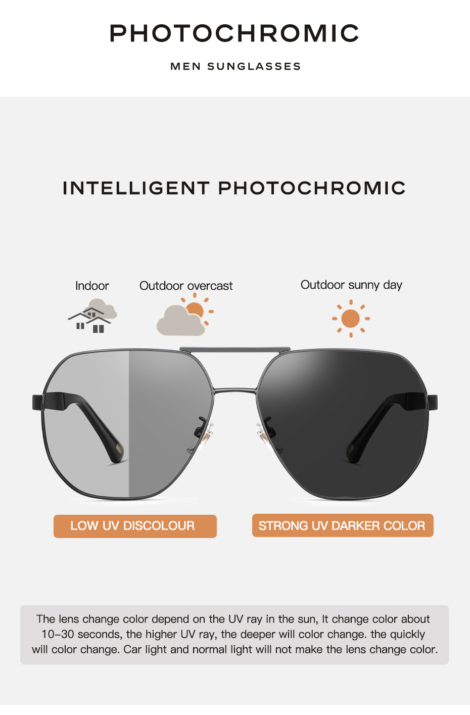 CAPONI Солнцезащитные очки мужские фотохромные, брендовые поляризационные для вождения на открытом воздухе, с защитой UV400, с антибликовым покрытием, BS21027