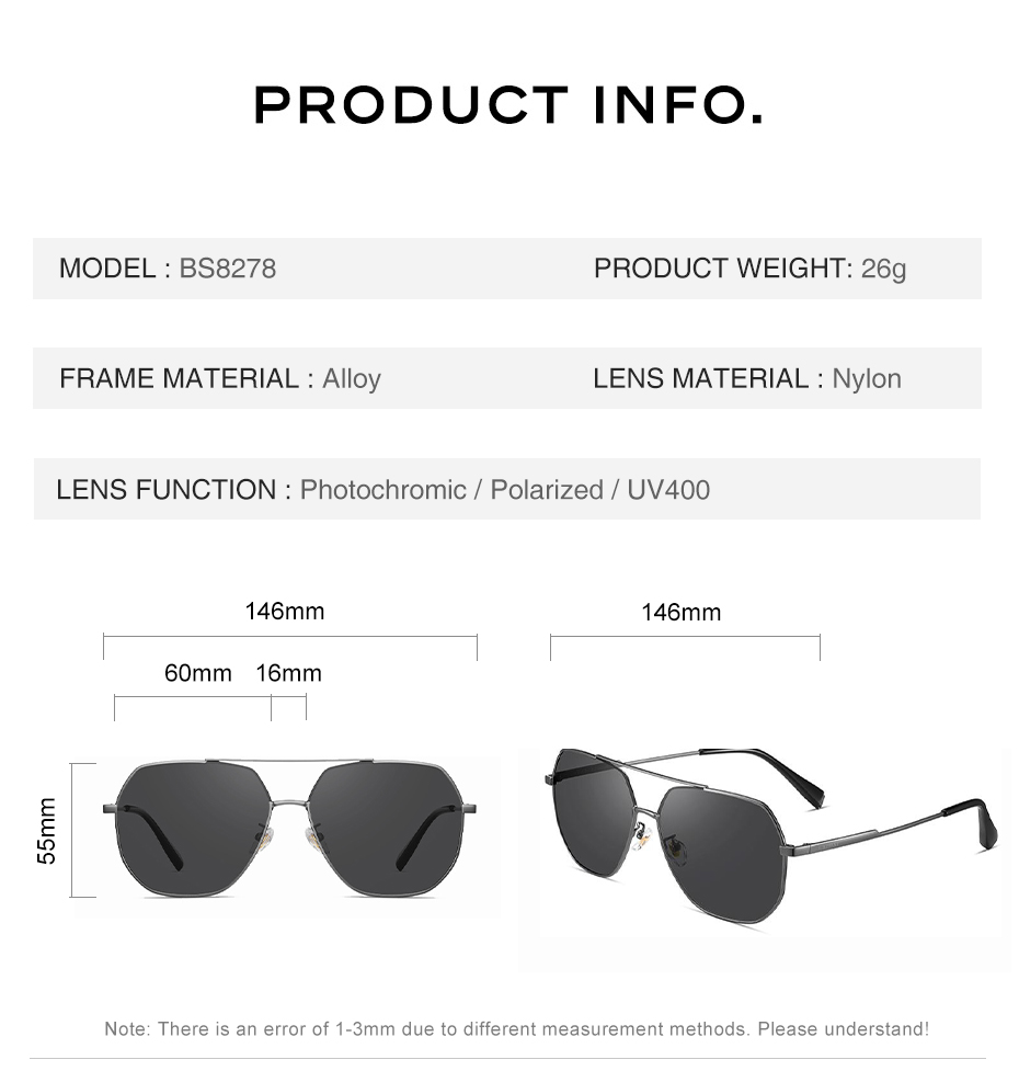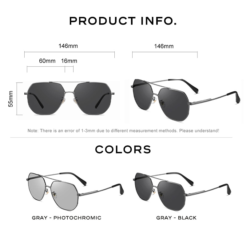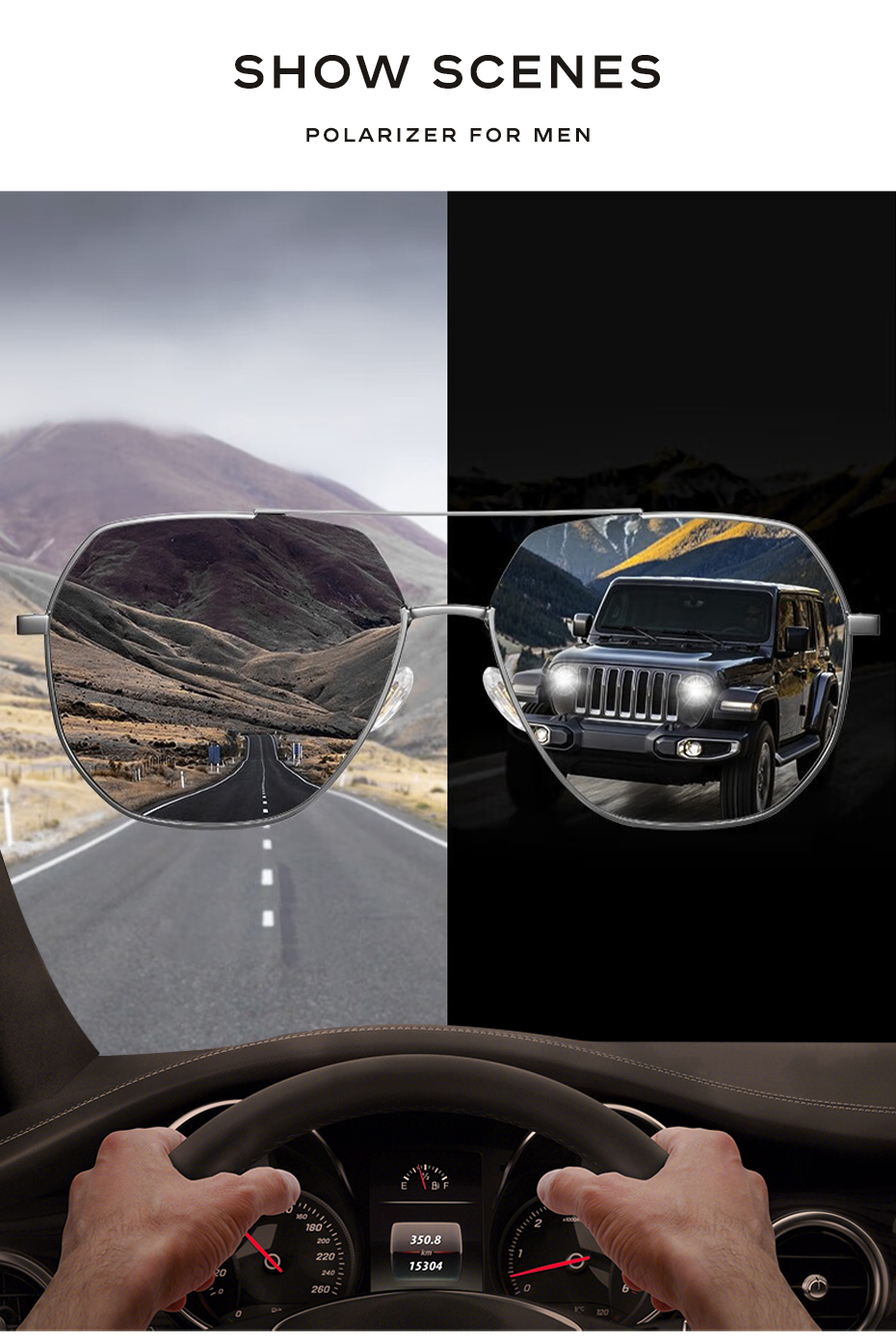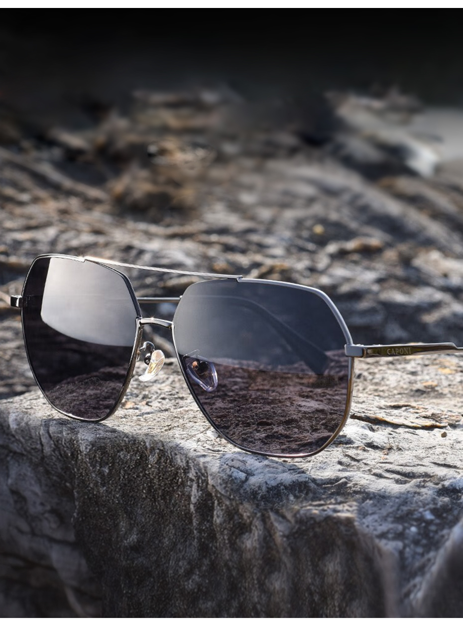 CAPONI Солнцезащитные очки Мужские поляризационные, поляризационные, фотохромные, многоугольные, из сплава, для вождения, с защитой UV400, Классические брендовые, BS8278